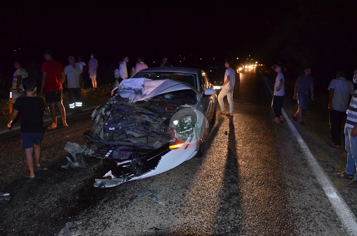 Meydana gelen kazada römorklu traktörde ve otomobilde büyük hasar meydana geldi.