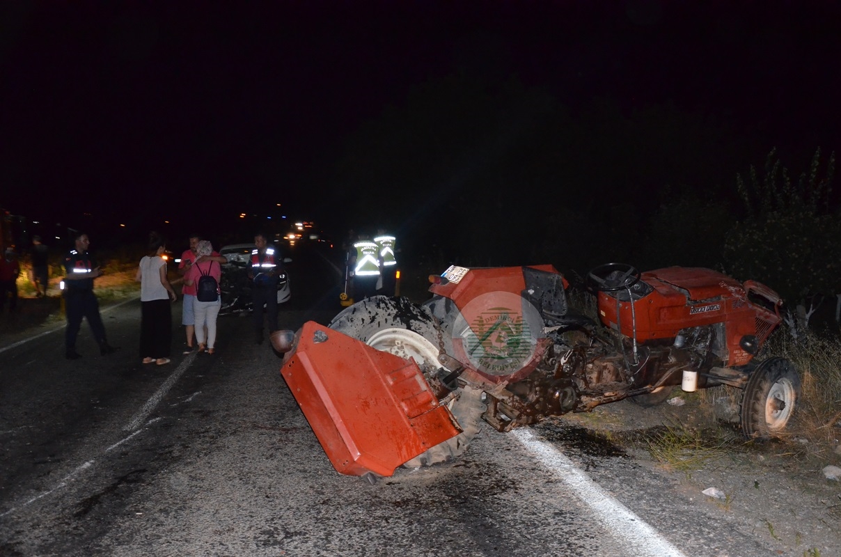 Demirci - Salihli karayolu Yeşildere Mevkinde 35 KF 7709 plakalı Hakan K. (40) yönetimindeki otomobil önünde seyir halinde ilerlemekte olan 45 PE 093 plakalı İlhan K. (33) yönetimindeki traktöre arkadan çarptı.