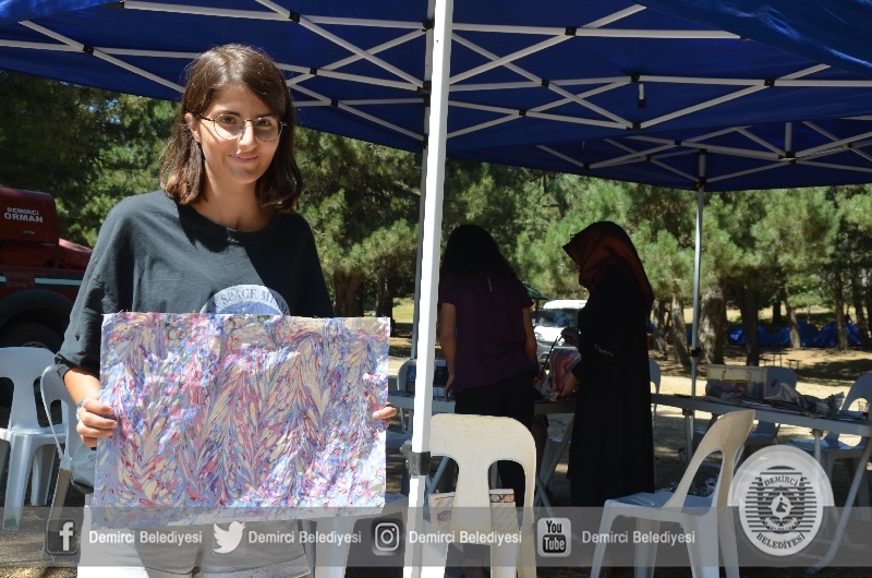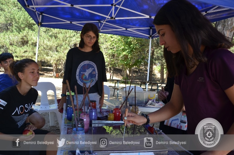 Kamp alanında ayrıca Halk Eğitimi Merkezi Müdürlüğü usta öğreticileri tarafından ebru sanatı ve yöresel el sanatları öğretiliyor.