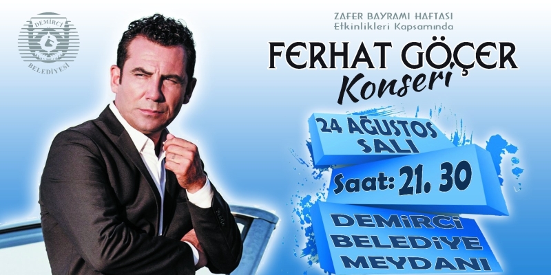 Belediyemiz tarafından Zafer Haftası etkinlikleri kapsamında organize edilen konserde sanatçı Ferhat Göçer Demircililer ile buluşacak.