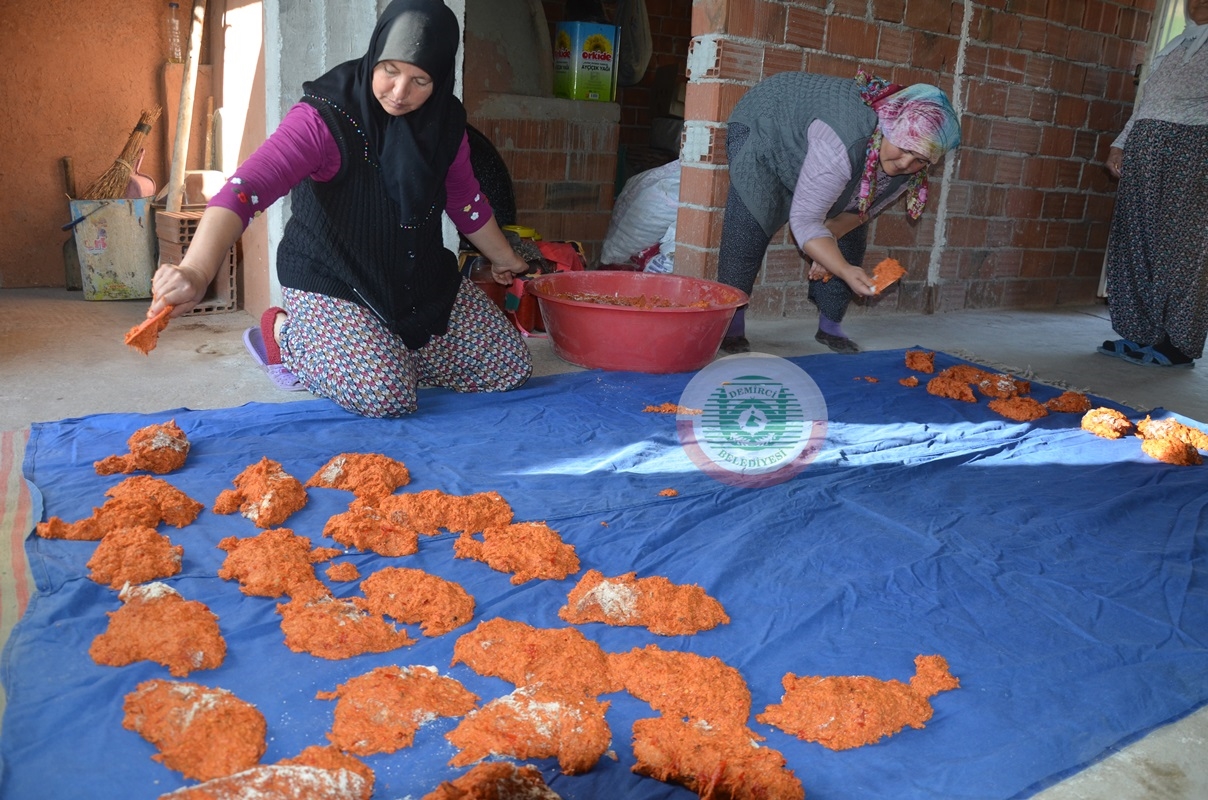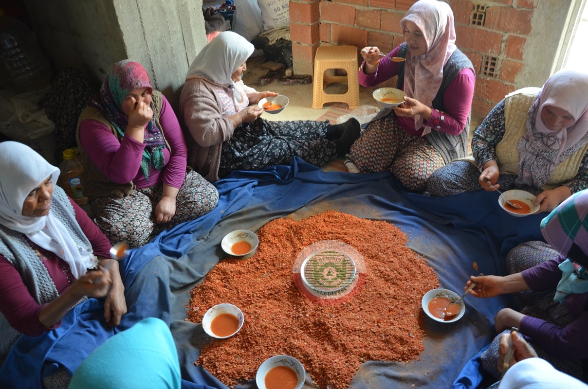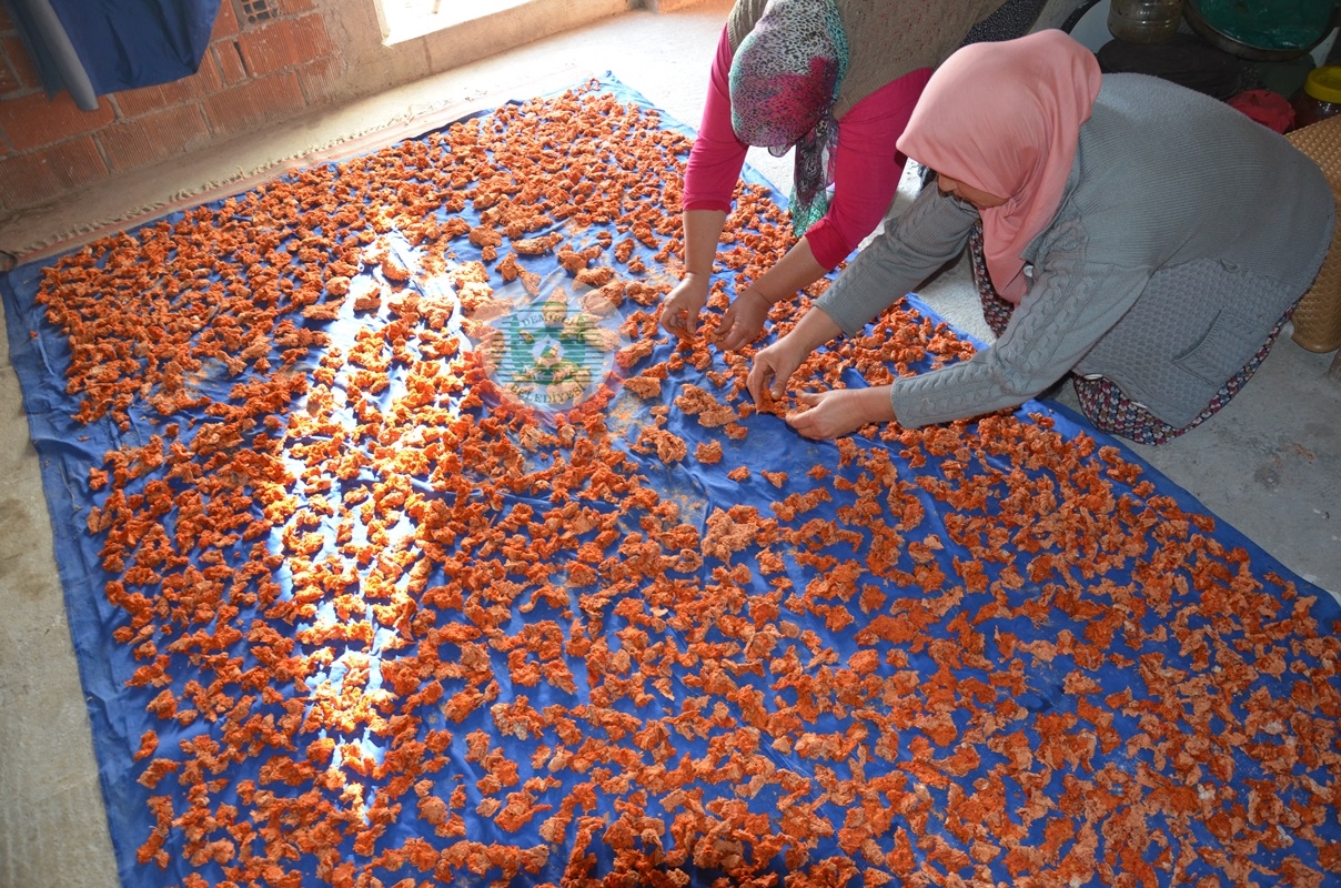 Sevinçler mahallesinde kadınlar tarhananın lezzetli bir şekilde olması için günler boyu süren emek sarf ediyorlar.
