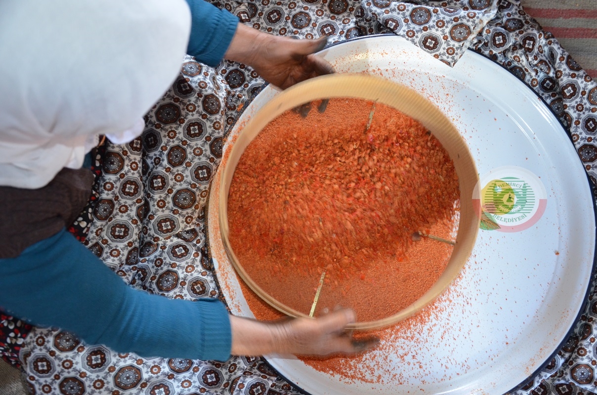 Mahalledeki kadınlar toplanıp tarhana hamurunu elleri ile ovalıyorlar. İnce bir elekten geçirilen tarhana bezin üzerine seriliyor. Kadınlar tarhana ovalamada türkülerle kışa hazırlanıyorlar.