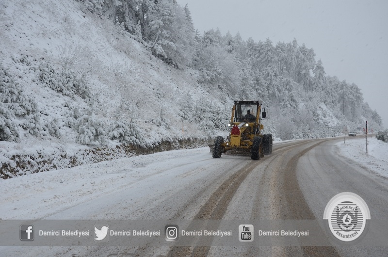Karayolları ekipleri 1470 rakımlı Akçakertik mevki olan Demirci - Simav karayolunda kar küreme ve tuzlama çalışmalarını sürdürüyor.
