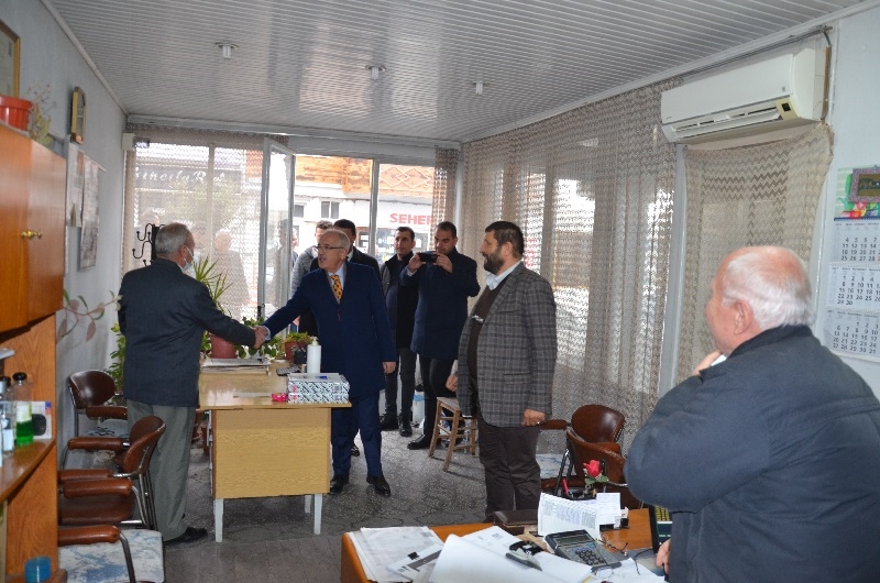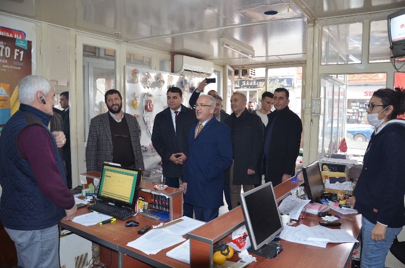 Manisa Milletvekili İsmail Bilen, Demirci Şoförler ve Otomobilciler Odası Başkanı İrfan Aksu ve Sanayi esnafınla da selamlaştı.