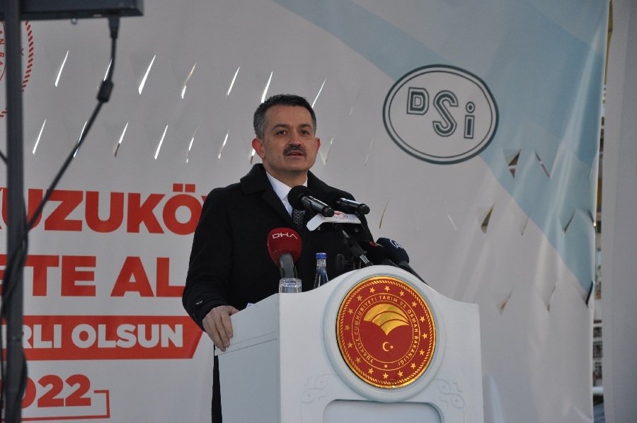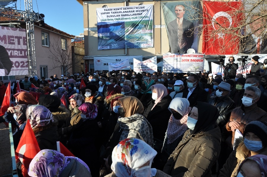 Tarım ve Orman Bakanı Dr. Bekir Pakdemirli yaptığı konuşmada " Tabi tarımsal üretimdeki artışların arkasında sulama yatırımlarına verdiğimiz önem var. Bildiğiniz üzere Su; bu yüzyılın en değerli ve en stratejik kaynağı. Su olmadan yaşam da yok, üretim de yok. Su yoksa toprak bile bize küsüyor. Vatanımızın bereketli toprakları suyla buluşunca yeşeriyor, çiftçimizin yüzü gülüyor. Bizler, Tarım ve Orman Bakanlığı olarak bir damla suyumuzu bile ziyan etmeden, suyun gücünü milletimizle, Manisalı hemşerilerimizle buluşturmaya devam ediyoruz. Son 19 yılda Manisa’ya su alanında toplam 2,7 Milyar Liralık yatırım yaptık. 27 baraj, 11 gölet, 8 yeraltı depolaması, 1 içme suyu tesisi, 1 hidroelektrik enerji santrali, 43 sulama tesisi, 75 taşkın koruma tesisi olmak üzere toplam 165 su yatırımını Manisa’mıza kazandırdık. Bakan olduktan sonra Manisa’ya, baba ocağına ayrı bir önem verdim. Benim en fazla ziyaret ettiğim, yatırımlarını birebir takip ettiğim bir şehir Manisa. Son 3,5 yılda Manisa’ya su alanında 1 Milyar Liranın üzerinde yatırım yaptık. 16 baraj, 16 sulama tesisi, 7 taşkın koruma tesisi, 8 yeraltı depolaması ve 1 hidroelektrik enerji santralini bu dönemde hizmete aldık.104 bin dekardan fazla alanı sulamaya açtık. Sulamaya açılan bu alanlar sayesinde zirai gelirde 225 Milyon Lira artış sağladık" dedi.