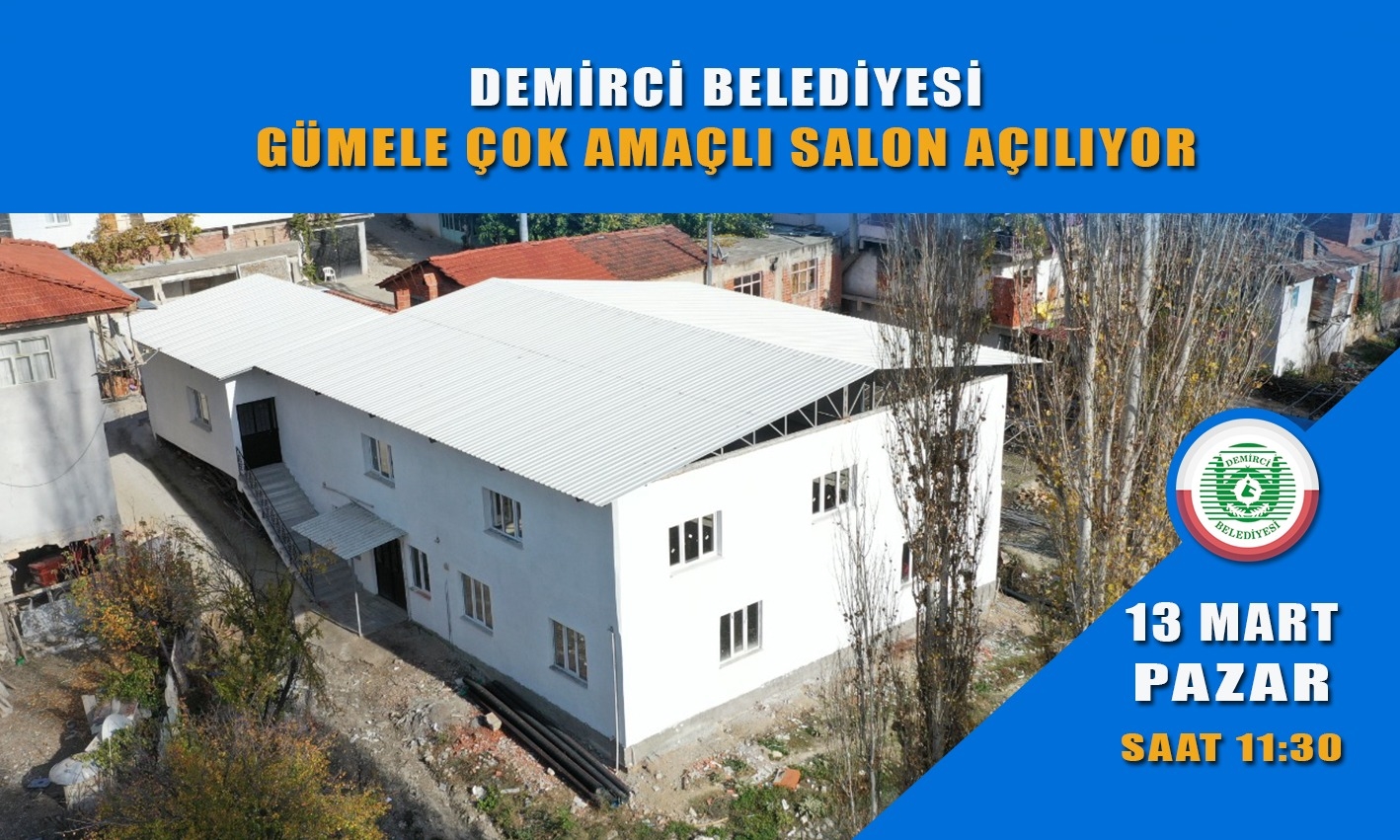 Demirci'nin merkezinden kırsalına her alanda hizmet ve yatırımı vatandaşlarla buluşturan Belediye Başkanımız Selami Selçuk tarafından Gümele mahallemize yapılan çok amaçlı salon 13 Mart Pazar günü hizmete açılacak.