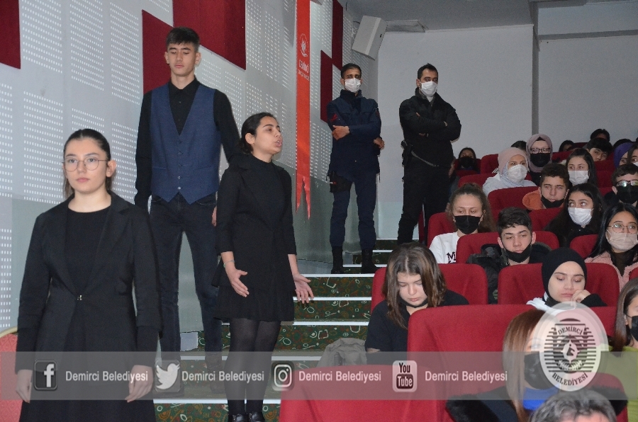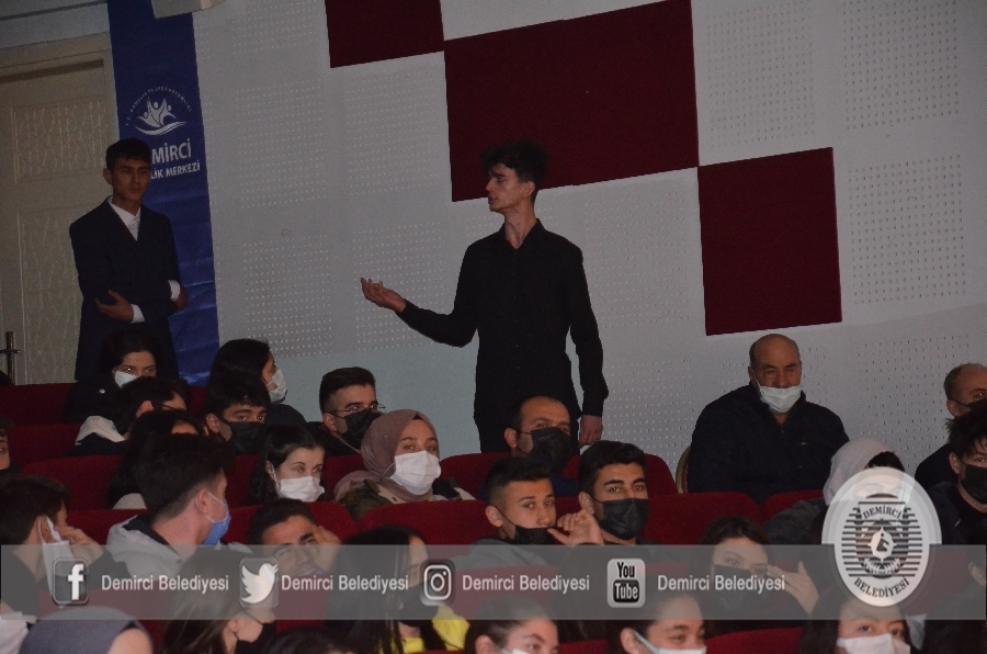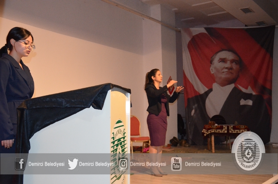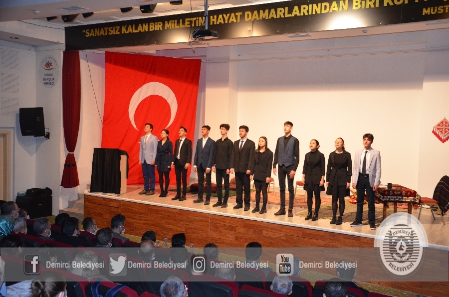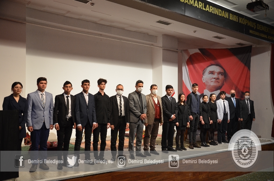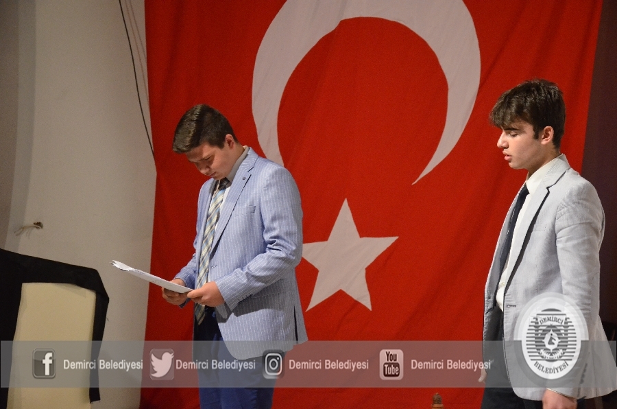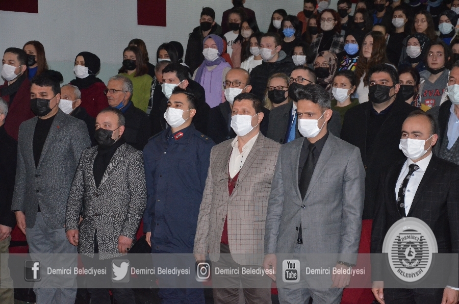 11 Mart Cuma günü Mehmet Akif Ersoy Gençlik Merkezi Konferans salonunda Anadolu Lisesi tarafından düzenlenen programa Demirci Kaymakamı Adem Kaya, Belediye Başkanı Selami Selçuk, İlçe protokolü, öğretmenler ve öğrenciler katıldı.