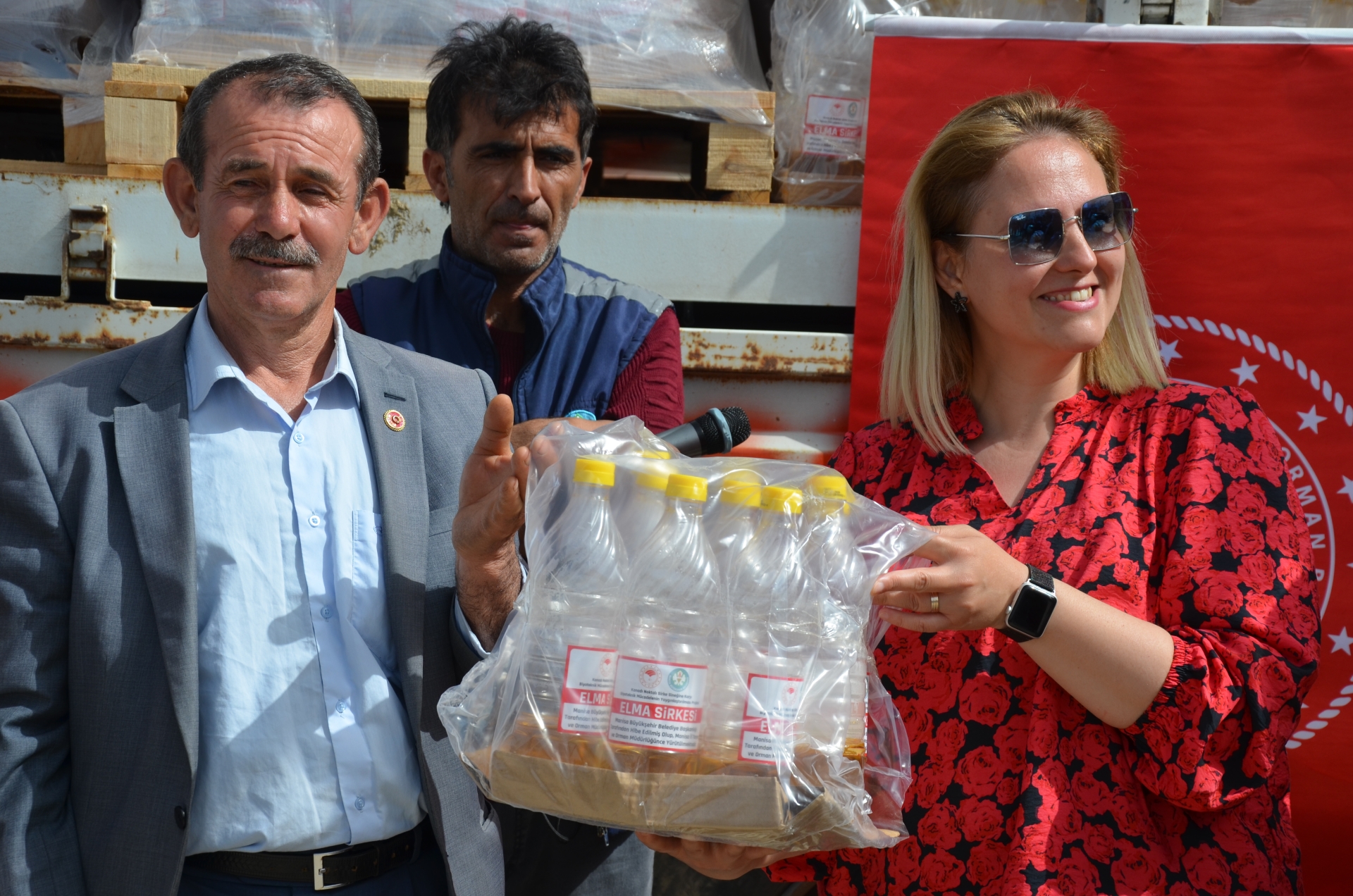 Konuşmalarından ardından kırsal mahallelerdeki üreticilere teslim edilmek üzere sirkeler mahalle muhtarlarına teslim edildi.