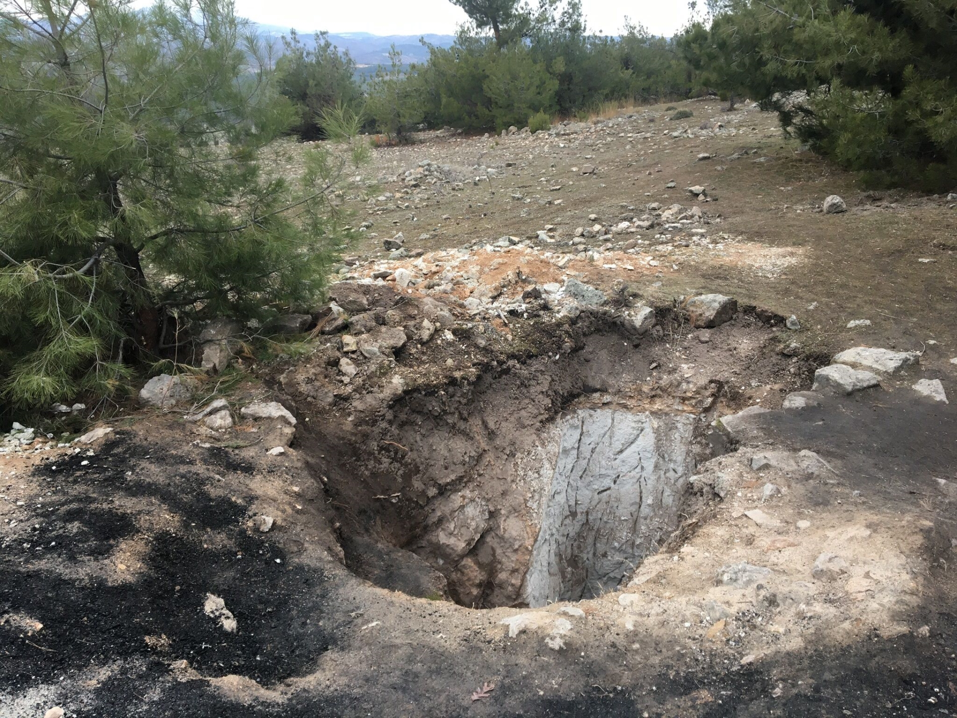 Demirci İlçe Jandarma Komutanlığı ekiplerinin arama ve tarama faaliyetleri esnasında Alaağaç Mahallesi Gürneyit Mevkiinde yaklaşık 10 metre derinliğinde 2 metre genişliğinde çukurlar görmesi üzerine alanda geniş çaplı inceleme faaliyeti başlattı.