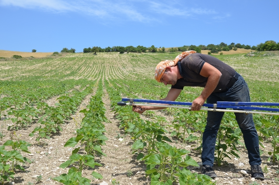 Demirci'de Tarım ve Orman Bakanlığı tarafından çiftçilere dağıtılan yüzde 75 hibeli ayçiçeği tohumları, nisan ayında 2 bin 500 dekar arazide toprakla buluştu.