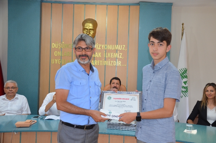 Belediye meclis salonunda düzenlenen ödül takdim programında Başkan Selami Selçuk, Okul Müdürleri, İlçe Milli Eğitim Müdürü ve Şube Müdürlerince ;