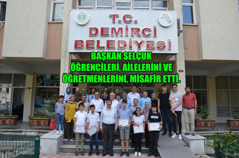 Demirci'de LGS sınavında ilçe bazında ilk 10'a girmeyi başaran öğrencileri, okul müdürlerini ve ilçe milli eğitim müdürünü Belediye Başkanı Selami Selçuk, belediyede misafir ederek ödül takdim etti.