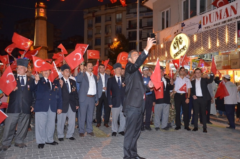 Programda konuşan Belediye Başkanı Selami Selçuk, Kıyamete kadar bu toprakların Türk yurdu olduğunu bütün dünya'ya ilan ediyoruz. Ve her türlü bedeli de ödemeye razıyız. Bin yıldır bu topraklarda 1071 Malazgirt'ten bu yana. Kolay olmadı, büyük bedeller ödeyerek el edilmiş bir başarıdır. 100 yıl önce Kurtuluş savaşında düşmanın işgal altında tutamadığı birkaç ilçeden birisi olmanın hazzını da yaşıyoruz. Biz 15 Temmuz'da da bizden görünen ama yabancıların uşağı olan, belli güçler tarafından ülkemiz işgal edilmek istendiğinde, 100 yıl önce Atalarımızın nasıl direndiyse, hep beraber meydanlara indik. Devletimize ve Milletimize bağlılığımızı bildirdik " dedi.