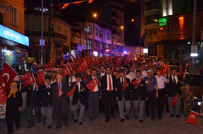 İlçede ilk olarak Çereşe meydanından 15 Temmuz Demokrasi Meydanına kadar yaklaşık 3 km mesafede bayraklar ve mehteran eşliğinde yürüyüş düzenlendi.