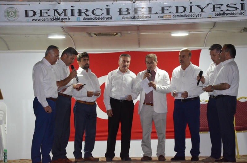 15 Temmuz Demokrasi Meydanında düzenlenen 15 Temmuz Demokrasi ve Milli Birlik Günü programına Demirci Kaymakamı Adem Kaya, Belediye Başkanı Selami Selçuk, Cumhuriyet Başsavcısı Betül Ilıca, Şehit Aileleri, Gaziler, AK Parti İlçe Başkanı Mehmet Acar, MHP İlçe Başkanı Ümit Kanyılmaz, İlçe Protokolü ve Vatandaşlar katıldı.
