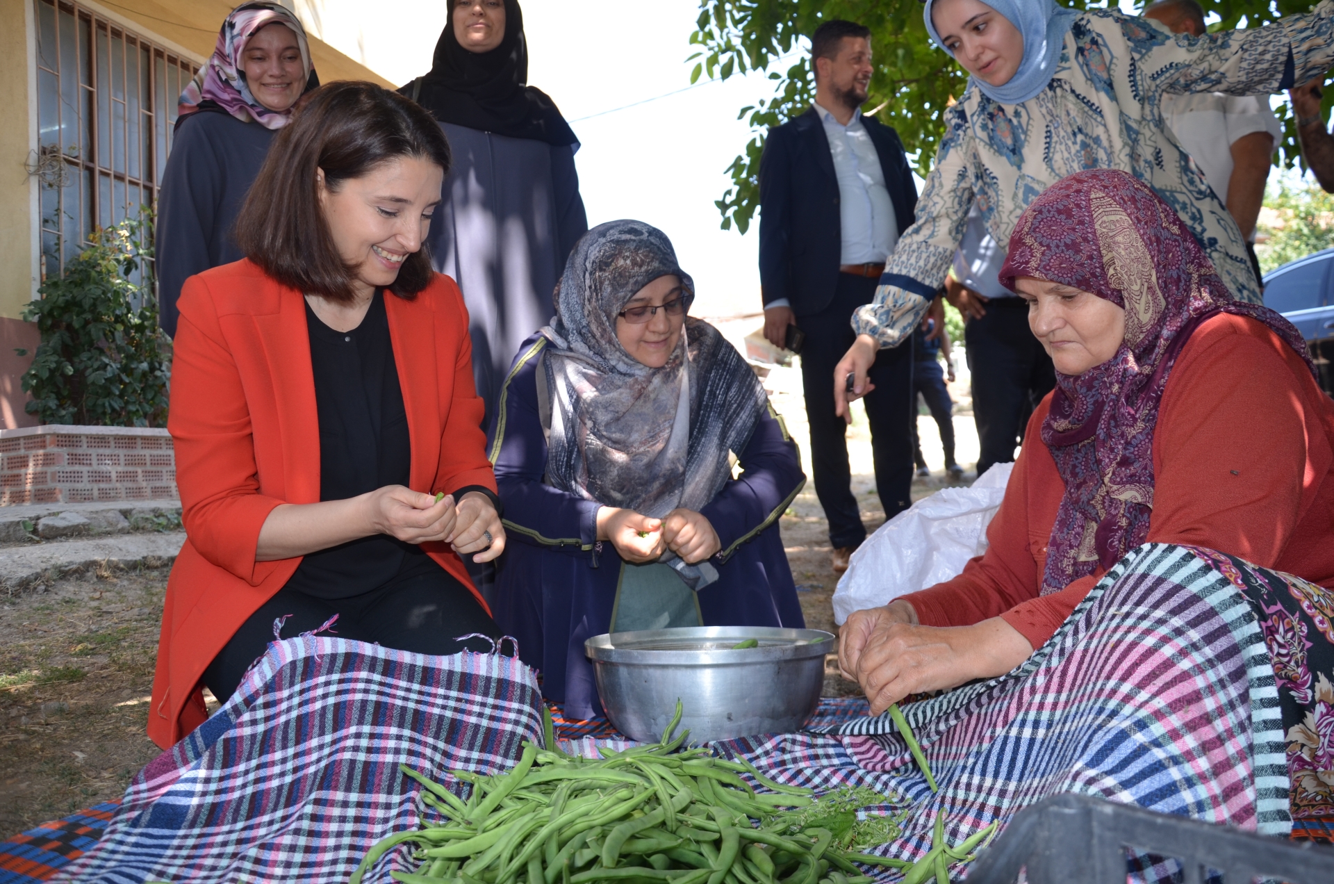 Daha sonra fasulye hasadı yapan çiftçileri tarlalarında ziyaret etti.