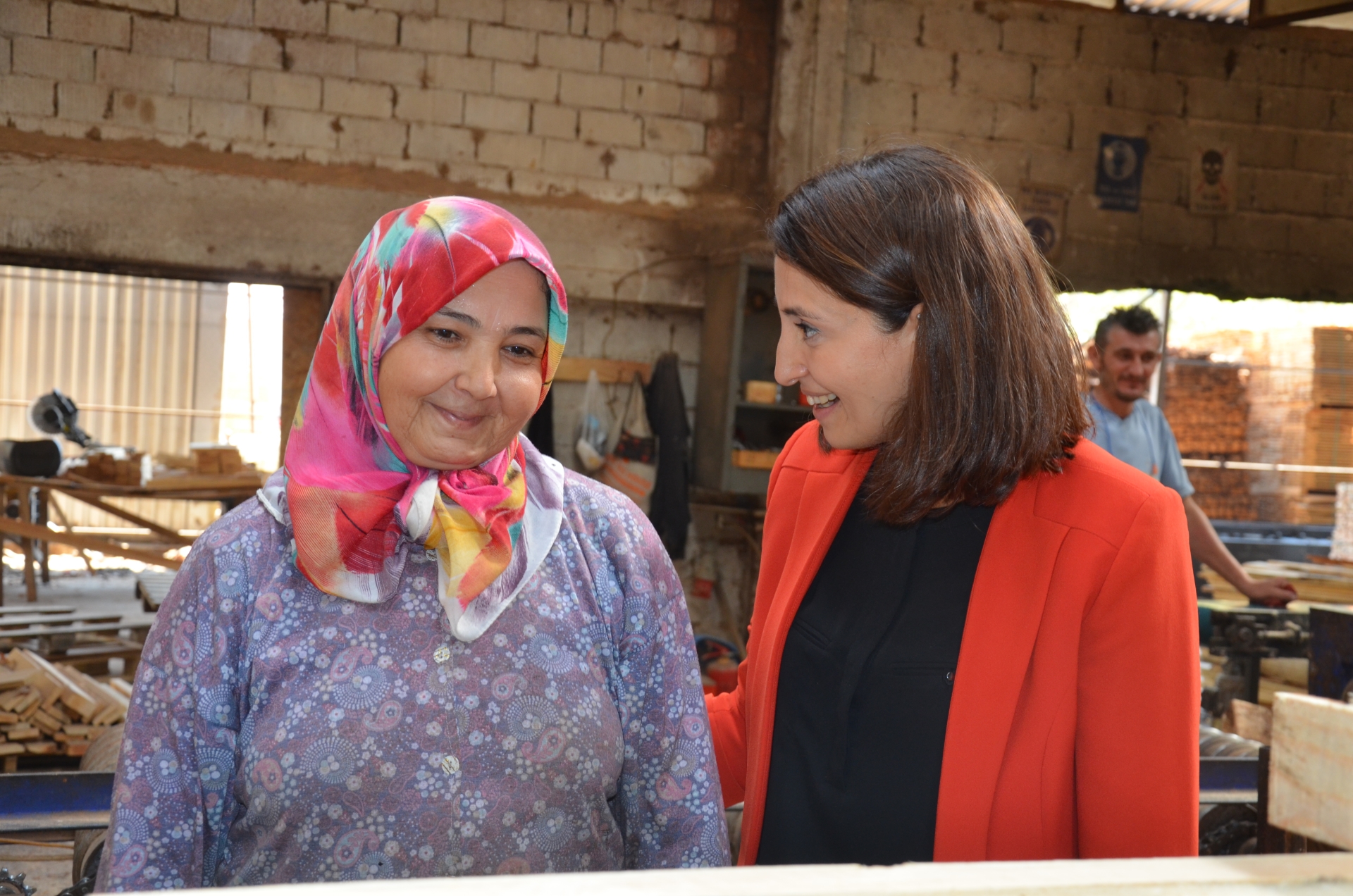 Söğütçük mahallesinde palet fabrikasını da ziyaret eden Milletvekili Semra Kaplan Kıvırcık, çalışanlara kolaylıklar diledi.