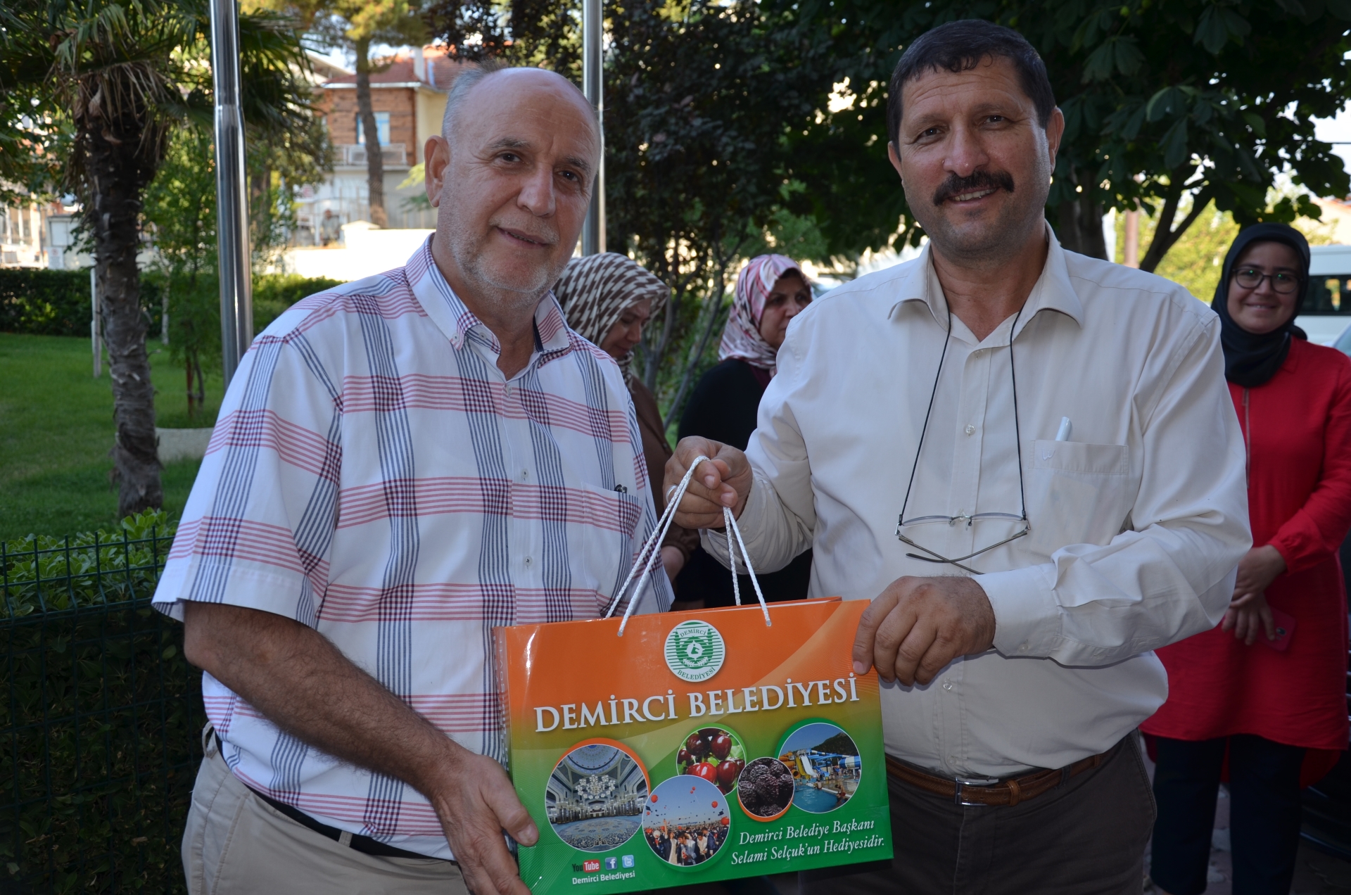 Demirci Belediyesini de ziyaret Manisa Milletvekili Semra Kaplan Kıvırcık'a, Belediye Başkanı Selami Selçuk tarafından Demirci kirazı hediye edilirken, ziyaretinden dolayı da teşekkür etti.