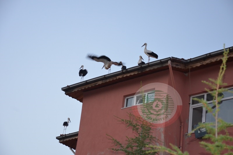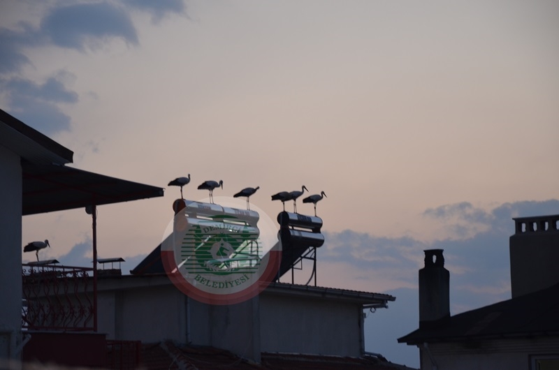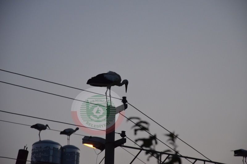 Leylekler kurumların, evlerin ve ağaçların dallarına konarak mola verdi.