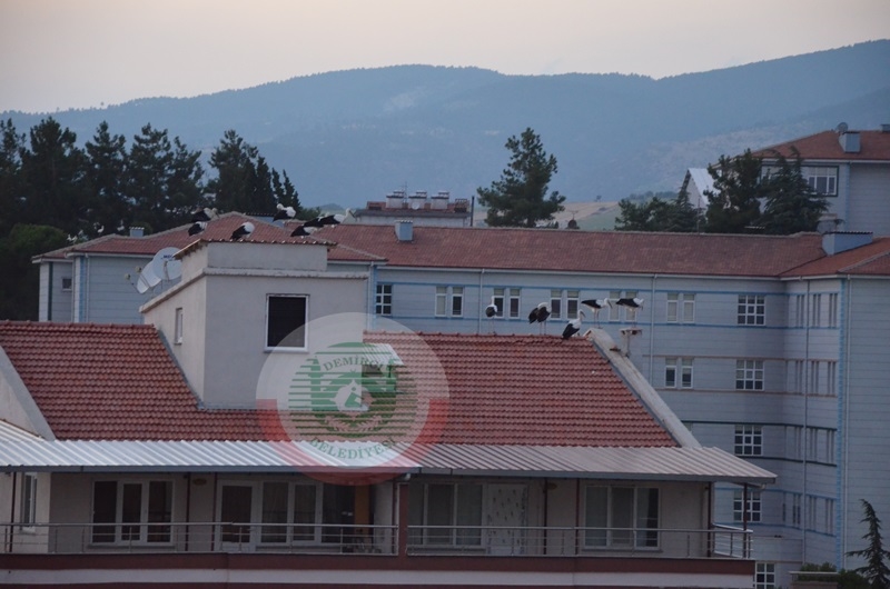 Demirci'ye akşam saatlerinde gelen çok sayıda leylek sürüsü ilçenin semalarında görsel şölen oluşturdu.