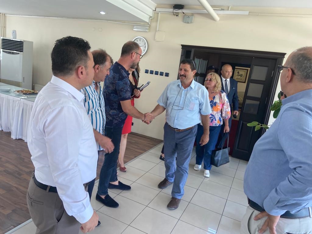 Demirci Akıncıları Derneği Başkanı Hüseyin Kıncı'da, İzmir - Şirinyer Hipodrom Müdürü Cen İşkaraya, Demirci Akıncıları logolu minyatür halı hediye etti.