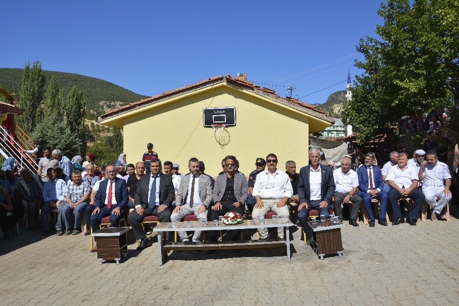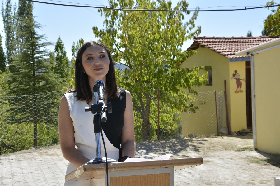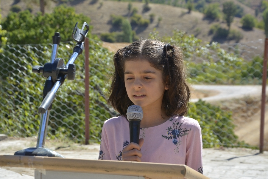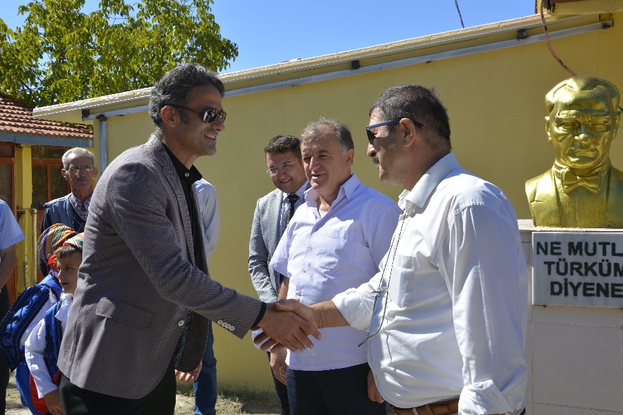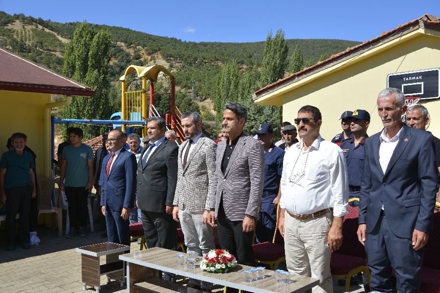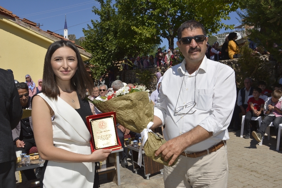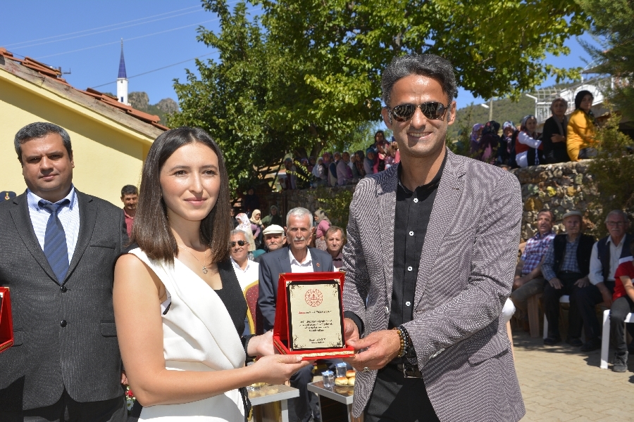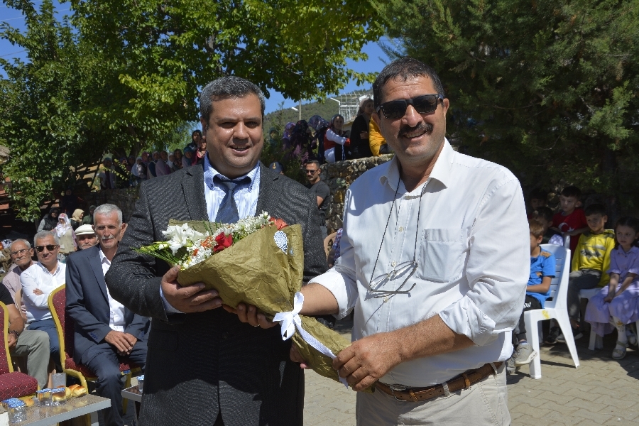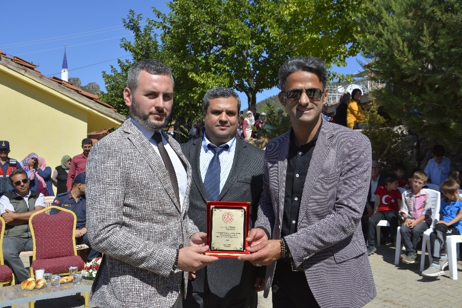 Kaymakam Adem Kaya ve Belediye Başkanı Selami Selçuk tarafından okulun yenilenmesini sağlayan Uğur Beton firmasına ve öğretmen Fadime Dinçer Yılmaz'a teşekkür plaketi ve çiçek takdim ettiler.