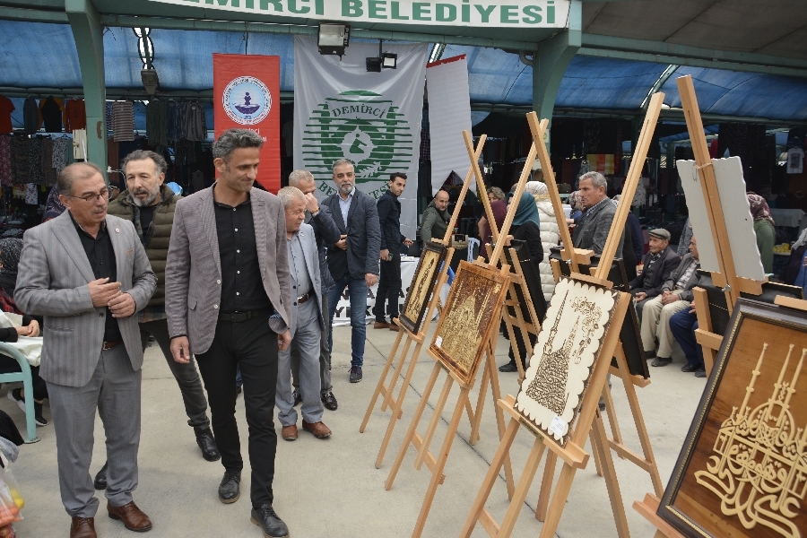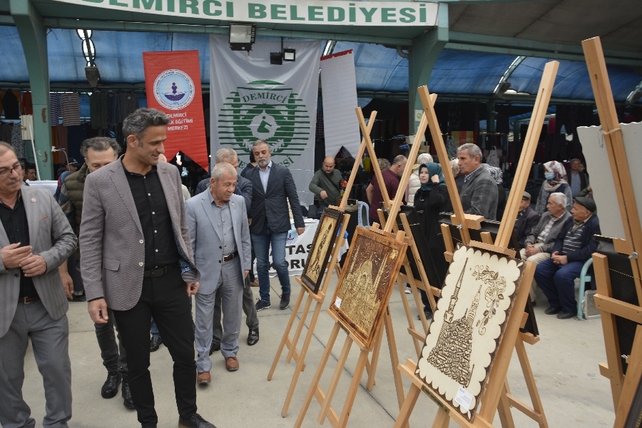 Demirci Belediyesi ve Halk Eğitimi Merkezi Müdürlüğü işbirliği ile ilçe merkezi kapalı pazaryeri alanında " pazarda sanat var sergisi " düzenlendi.