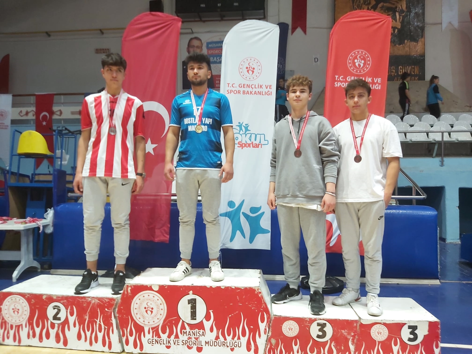 Demirci Necip Fazıl Kısakürek Fen Lisesi Müdürü Mustafa Yıldız, Okulumuz Manisa’da yapılan sağ ve sol kol bilek güreşi müsabakalarında 11 madalya kazandı. Turnuva boyunca bizlere hiçbir zaman desteklerini esirgemeyen Demirci Kaymakamımız Adem Kaya’ya ve Belediye Başkanımız Selami Selçuk’a teşekkür ediyorum “dedi.