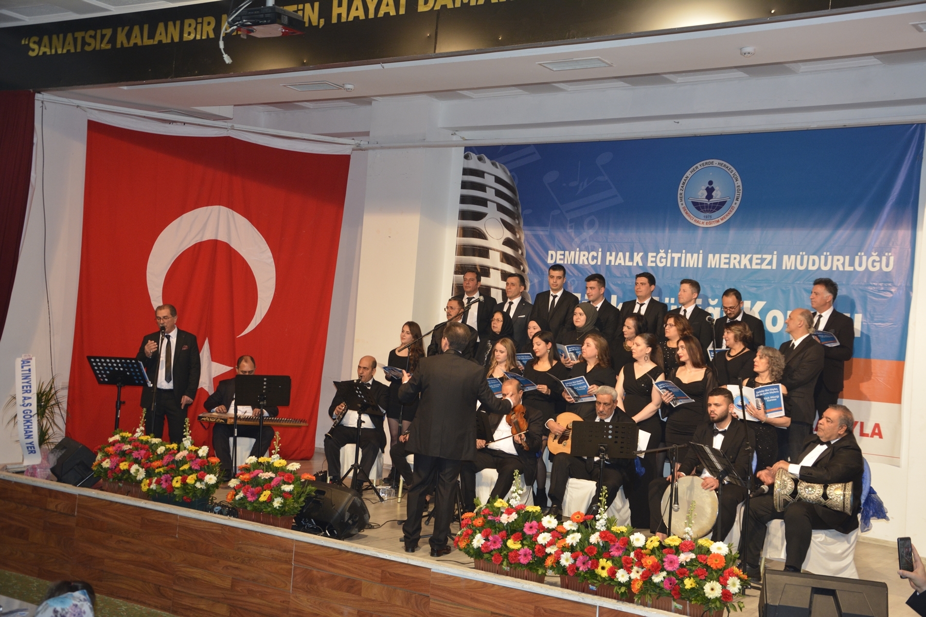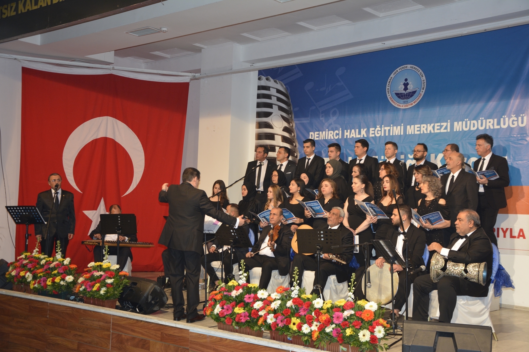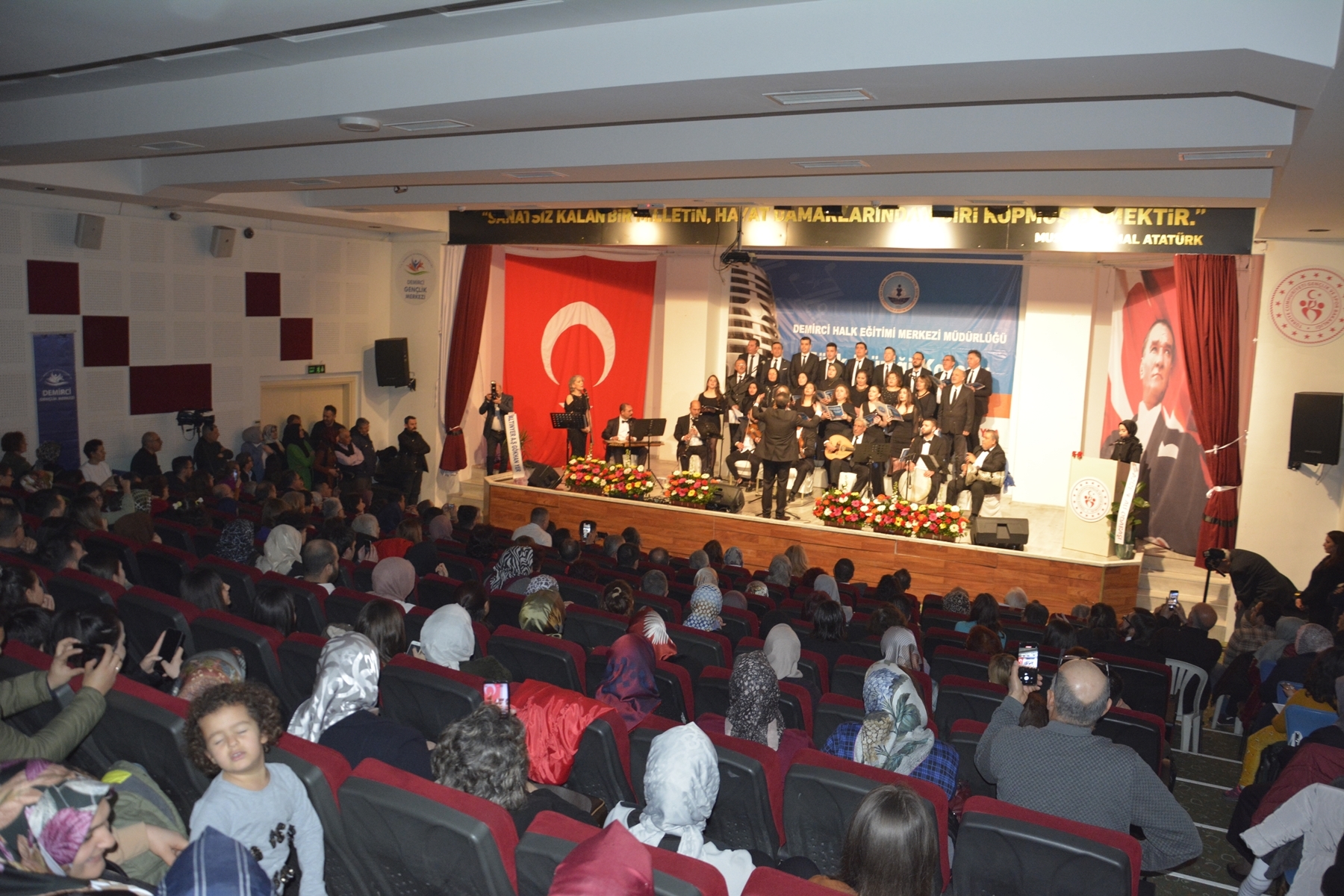 Demirci'de Halk Eğitimi Merkezi Müdürlüğünce kurulan ev hanımı, esnaf, kamu görevlisi ve vatandaşlardan oluşan Türk Müziği korosu ilk konserini yoğun bir katılımla gerçekleştirdi.