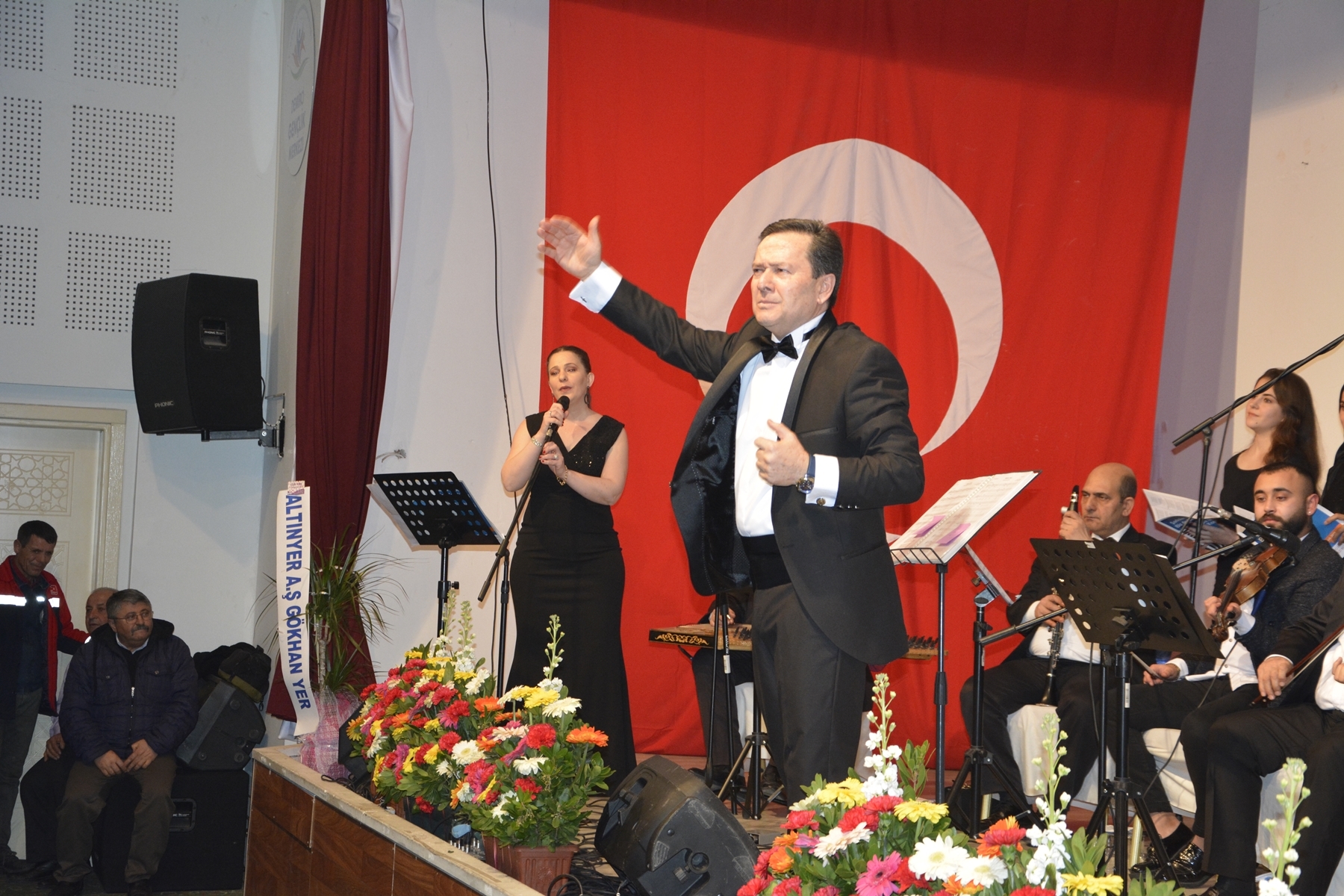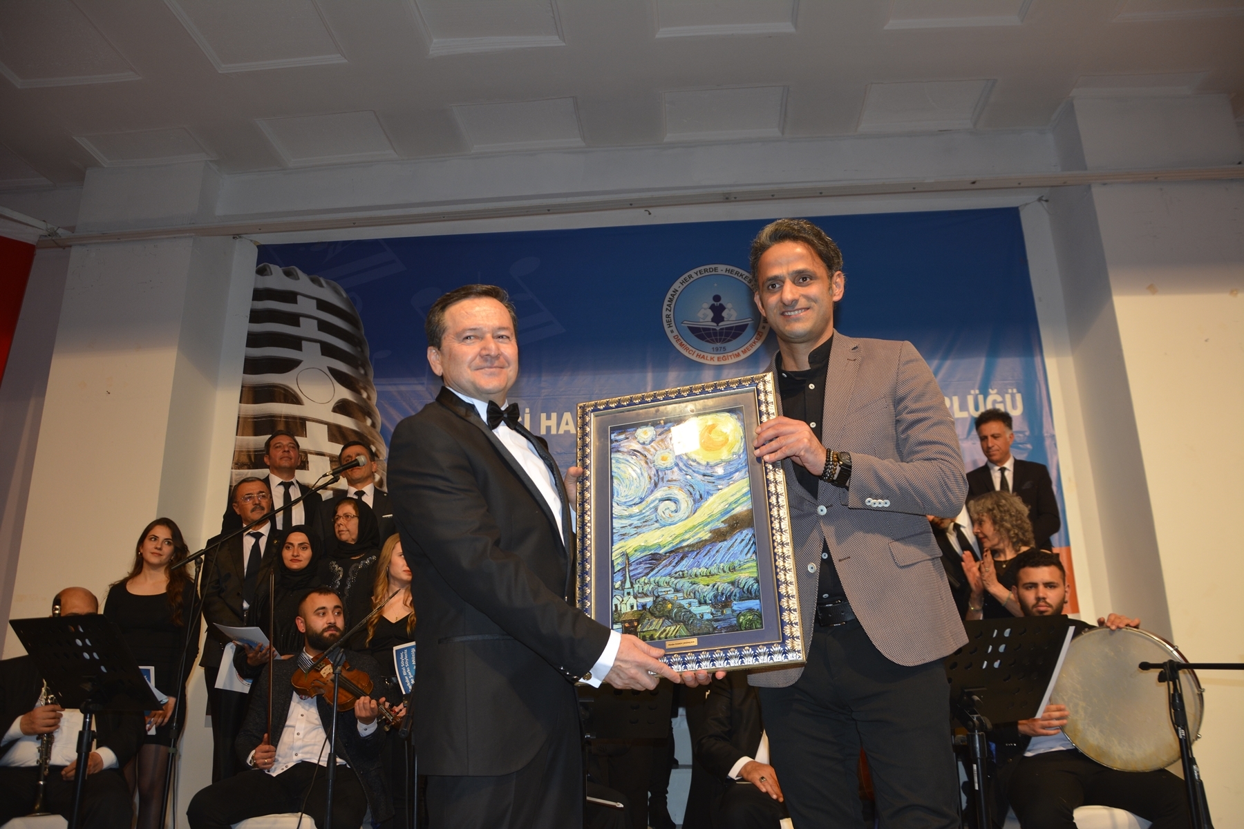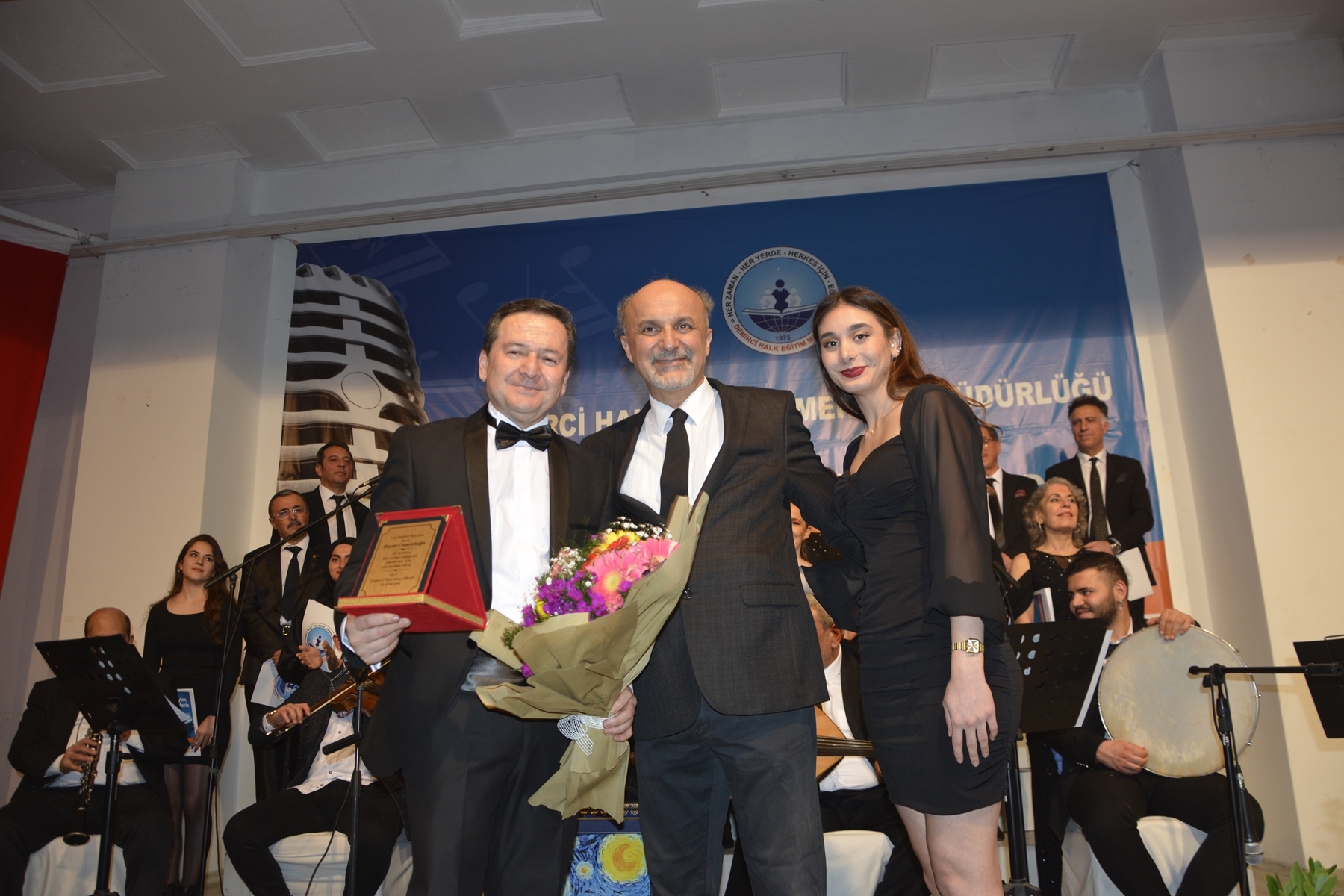 Programın sonunda Kaymakam Adem Kaya ve Belediye Başkanı Selami Selçuk tarafından koro şefi Hayati Cezayirlioğlu’na çiçek ve kağıt rölyef tablo hediye ettiler.