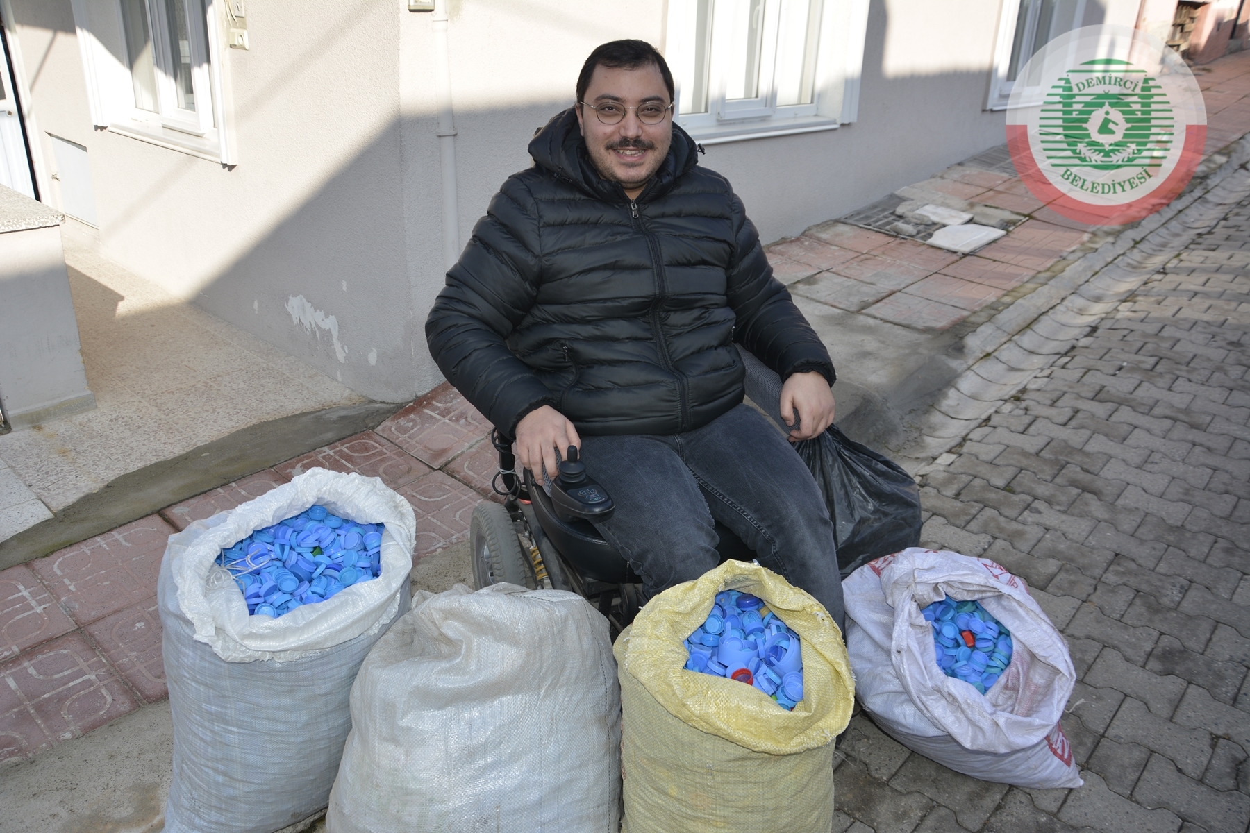 Demirci'de 30 yaşındaki engelli genç Said Arslan, İlçedeki bir okulda öğrenim gören öğrenci için başlatılan mavi kapak kampanyasına 50 Bin mavi kapak bağışı yaptı.