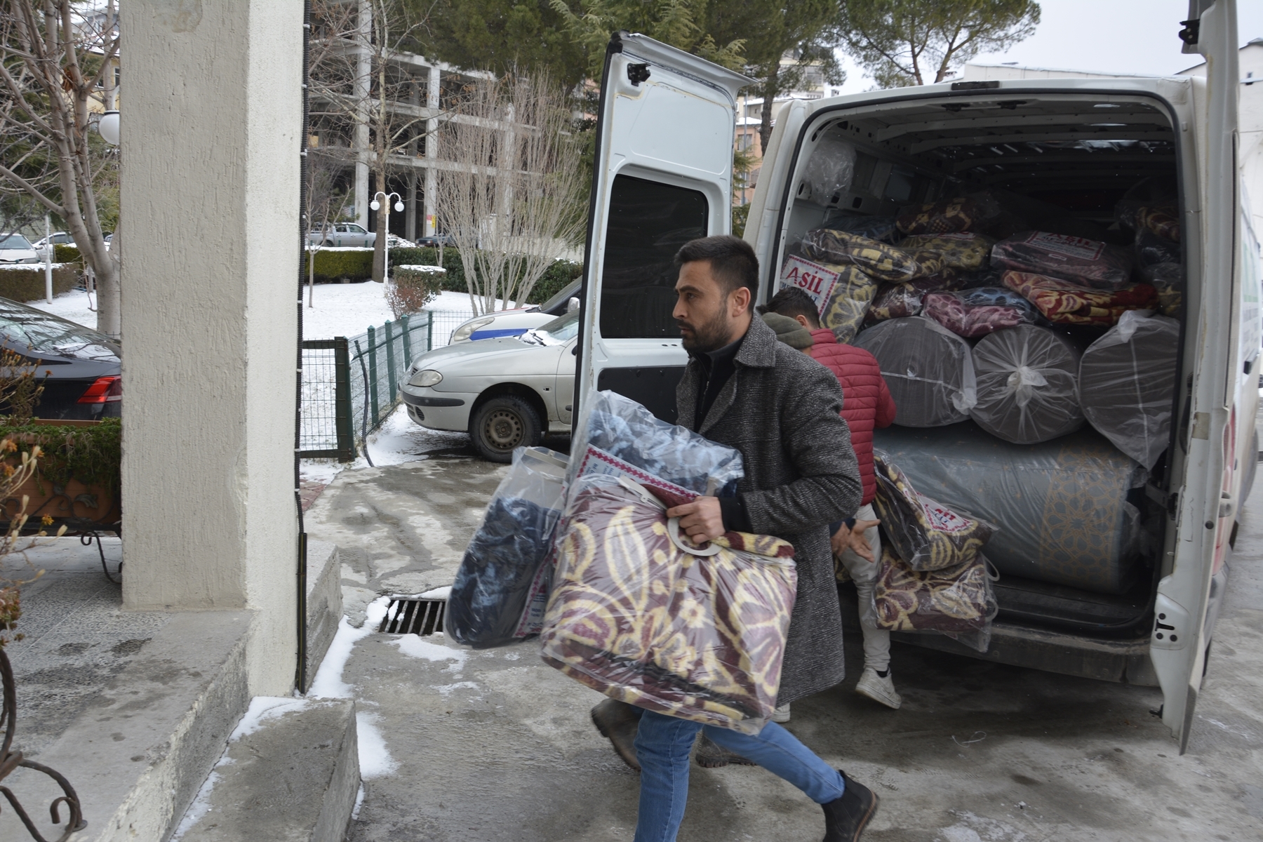 Demirci'de deprem bölgesine yardım toplama çalışmaları aralıksız sürüyor.