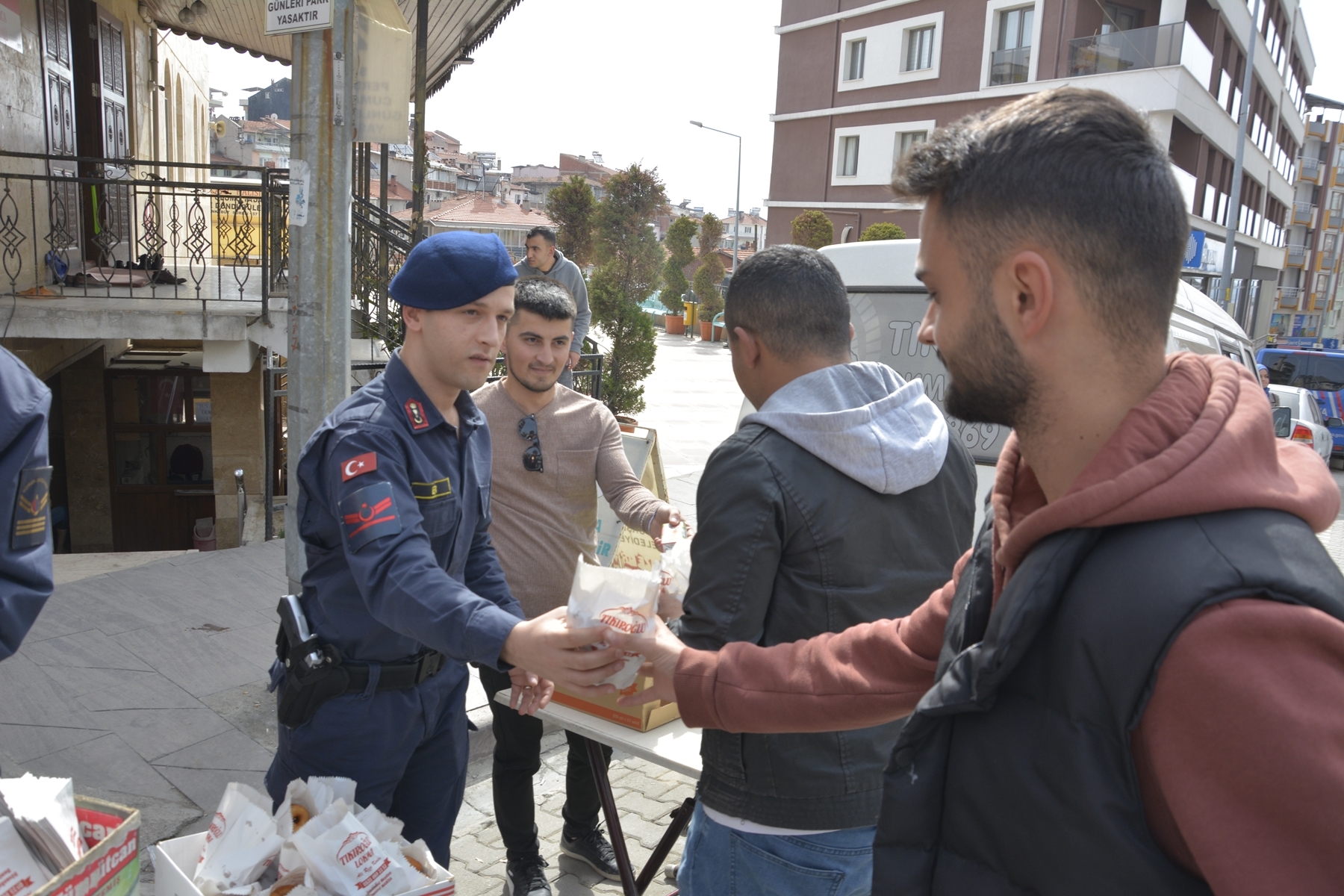 Kılınan öğle namazının ardından Demirci İlçe Jandarma Komutanlığı personeli tarafından vatandaşlara lokma ve meyvesuyu ikramında bulunuldu.