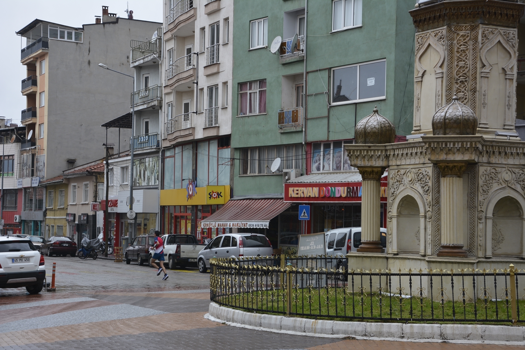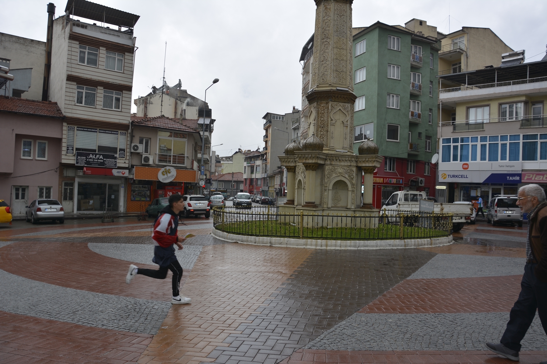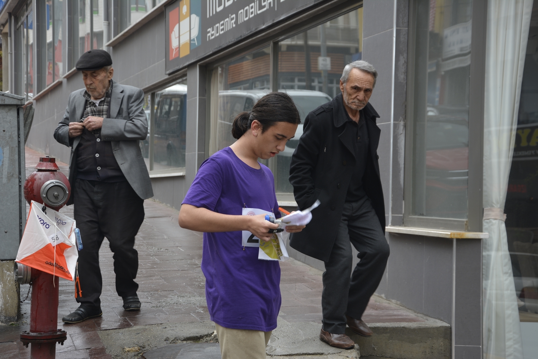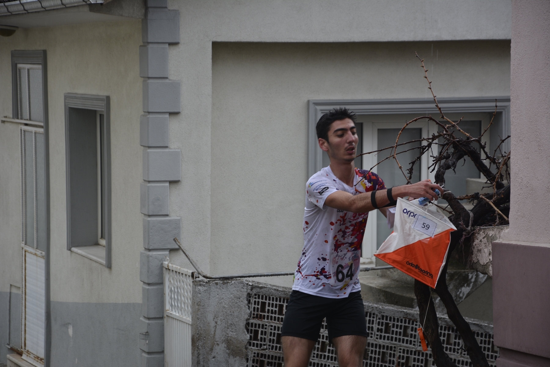 Sporcular ilçe merkezinde farklı noktalardaki hedefleri tamamlayabilmek için sağanak yağmur altında yarışları tamamladılar.