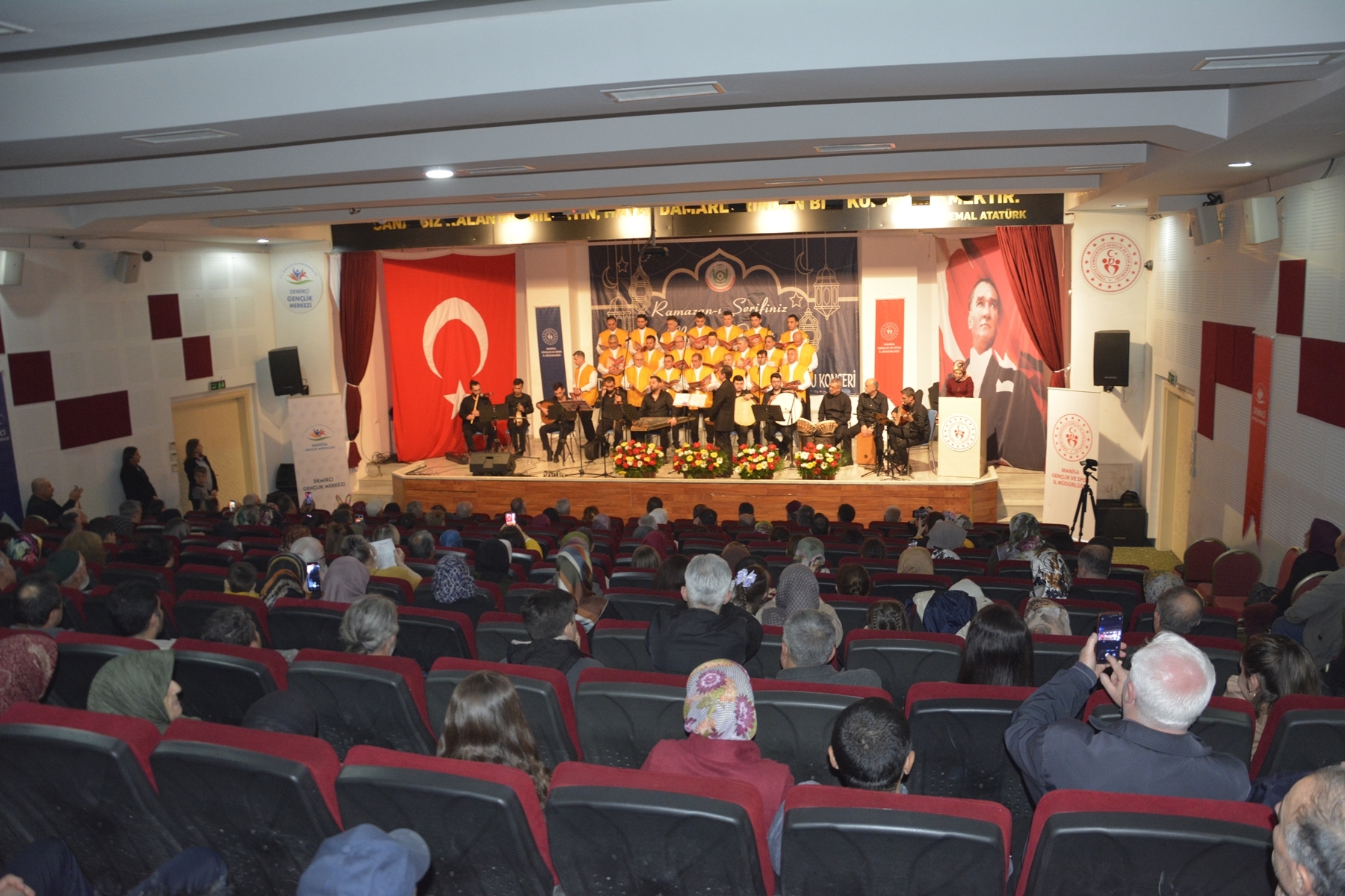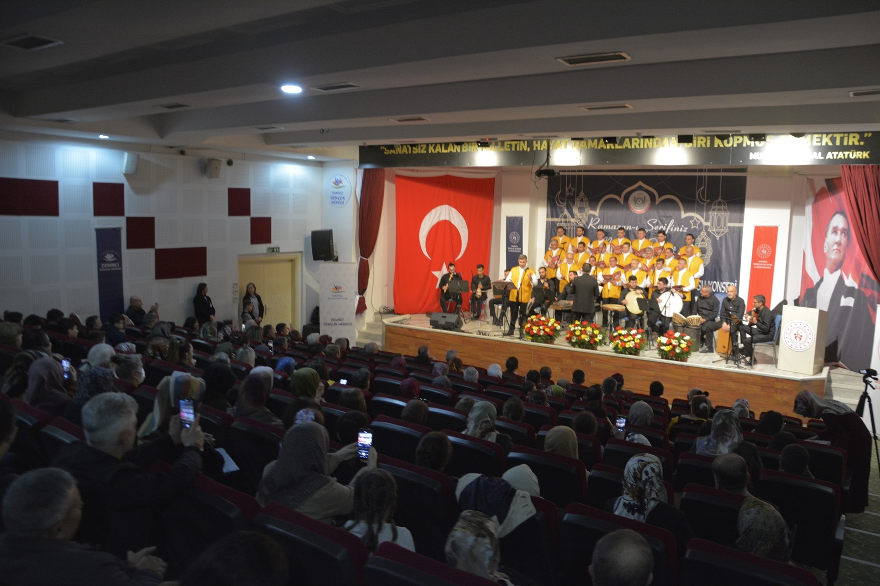 19 Nisan Çarşamba akşamı Mehmet Akif Ersoy Gençlik Merkezi konferans salonunda düzenlenen Türk Tasavvuf Müziği Korosu konserine Belediye Başkanı Selami Selçuk, MHP İlçe Başkanı Ümit Kanyılmaz, Demirci İlçe Müftüsü İbrahim Sağlam, Simav İlçe Müftüsü Hasan Serçe, Gençlik ve Spor İlçe Müdürü Bilal Yılmaz, Ticaret ve Sanayi Odası Başkanı Kasım Kabak, Şoförler ve Otomobilciler Odası Başkanı İrfan Aksu, kurum amirleri, belediye meclis üyeleri ve vatandaşlar katıldı.