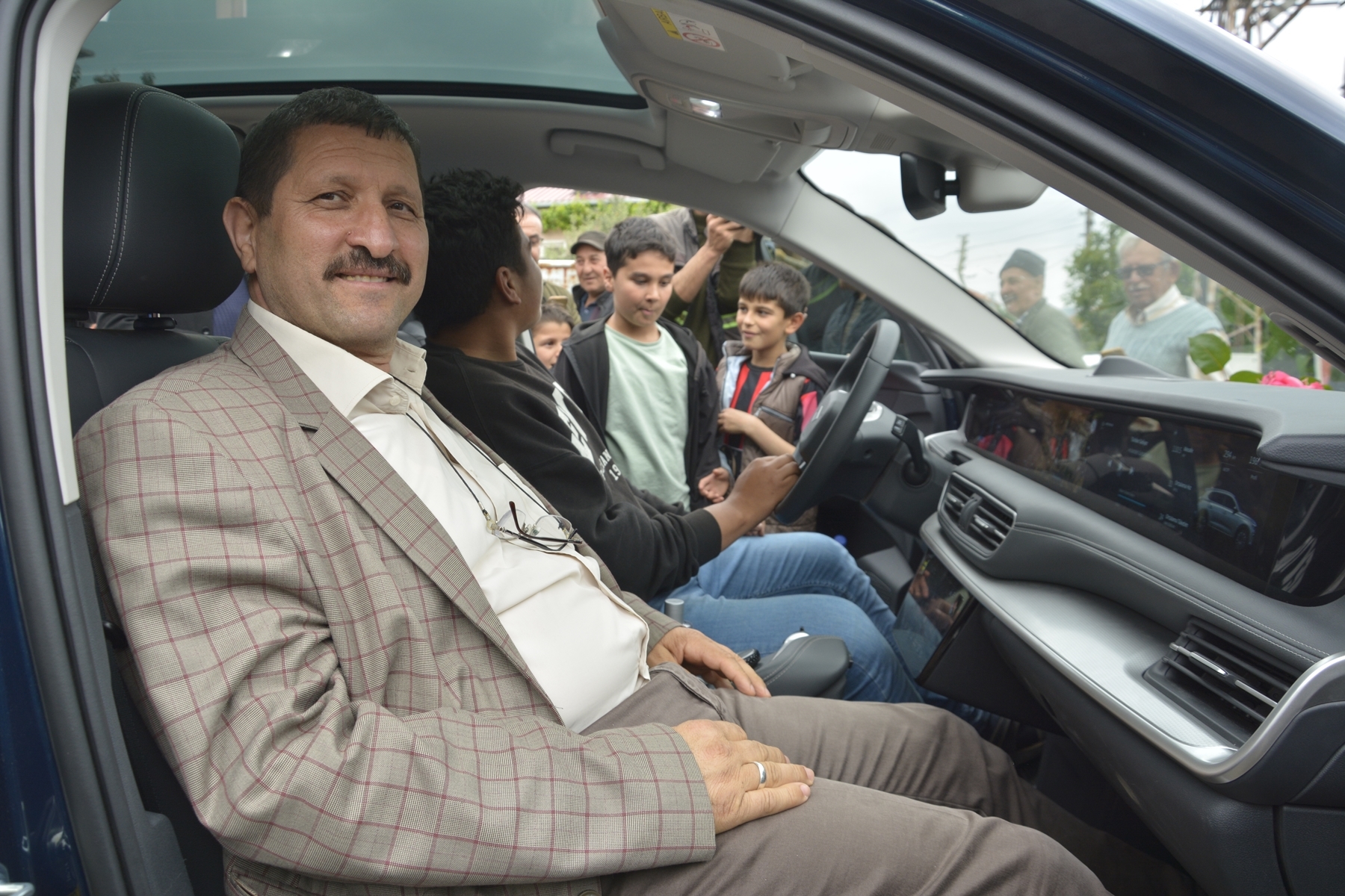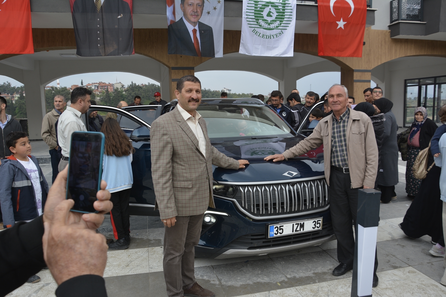 Belediye Başkanı Selami Selçuk, Kılavuzlar mahallesinde TOGG otomobil vatandaşlarla birlikte karşıladılar.