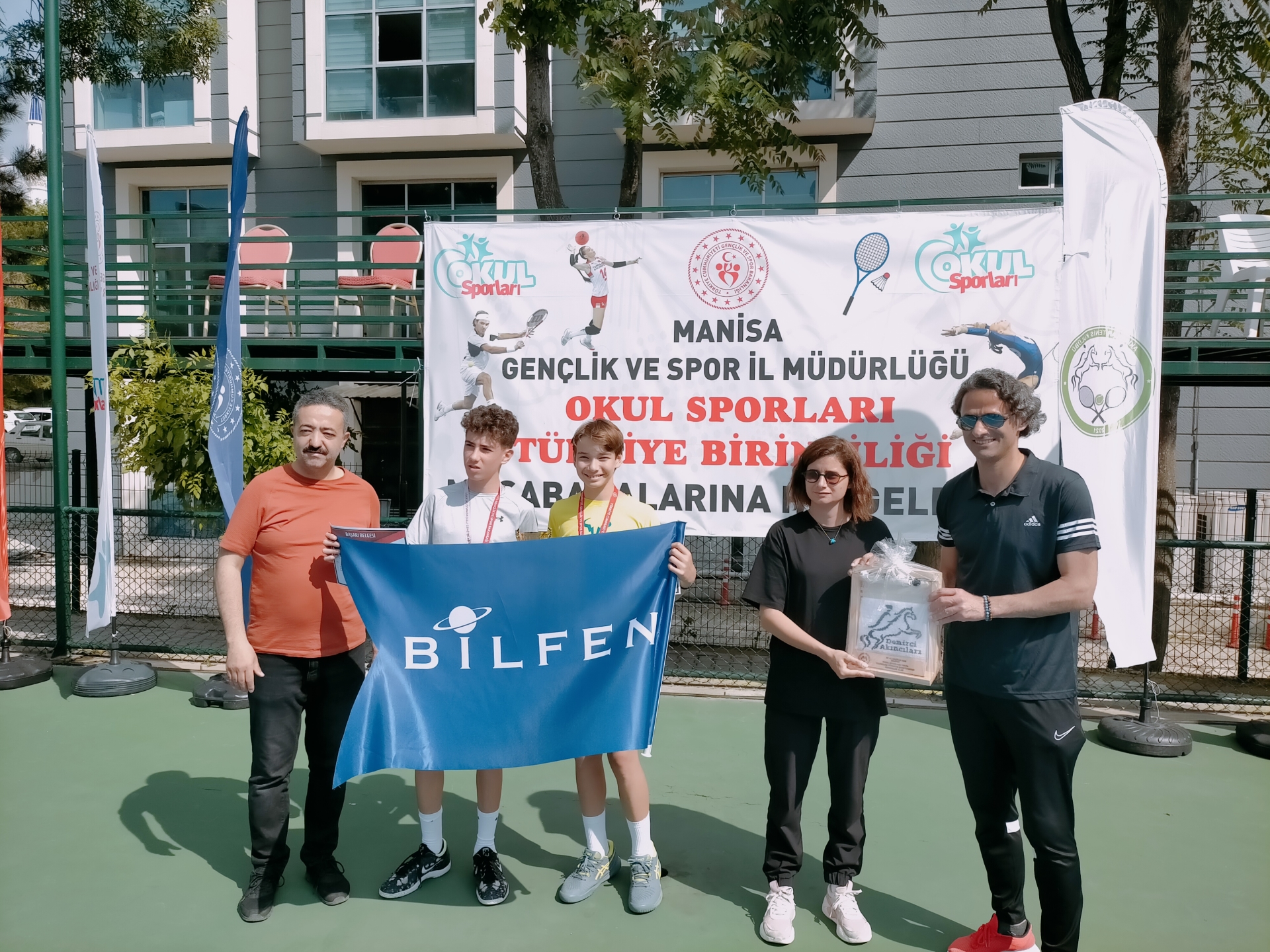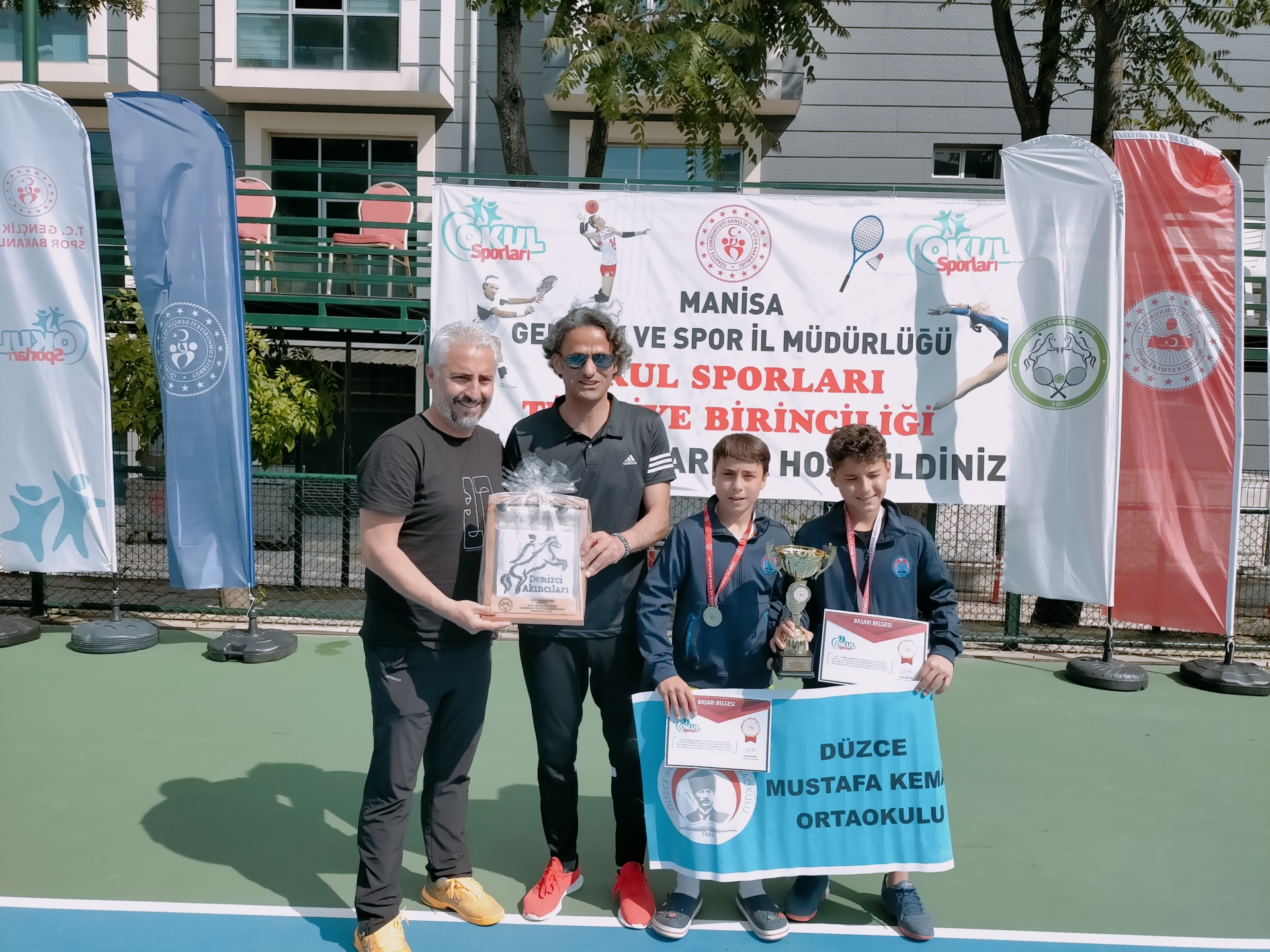 5 gün süren şampiyonanın sonunda 2 kategori olan kızlar ve erkeklerde dereceye giren takımlara ödülleri ve kupaları Tenis Federasyonu Yönetim Kurulu Üyesi - Demirci Kaymakamı Adem Kaya ve Gençlik ve Spor İlçe Müdürü Bilal Yılmaz tarafından verildi.