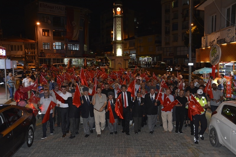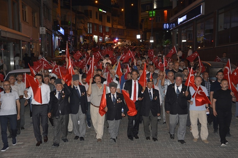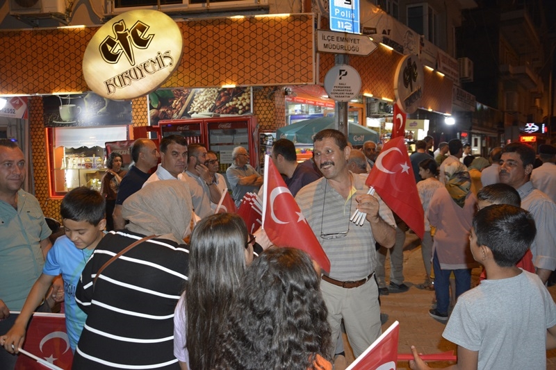 Sala’nın ardından İlçe Müftü Vekili Süleyman Bilgili tarafından Şehitler için okunmasının ardından saat : 00.13’de meydanda ve ilçe genelinde Sala okundu.