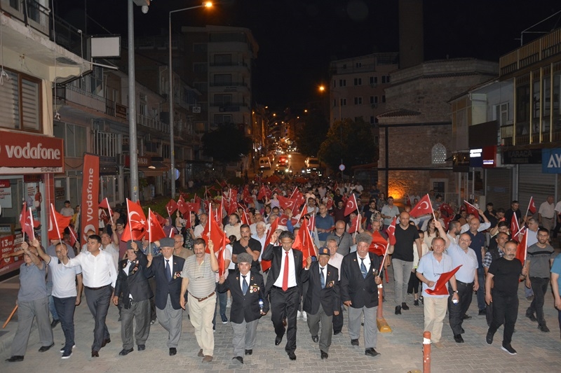 Demirci'de 15 Temmuz Demokrasi ve Milli Birlik gününde Çereşe meydanından 15 Temmuz Demokrasi Meydanına kadar yaklaşık 3 km mesafede bayraklar ve marşlar eşliğinde yürüyüş düzenlendi.