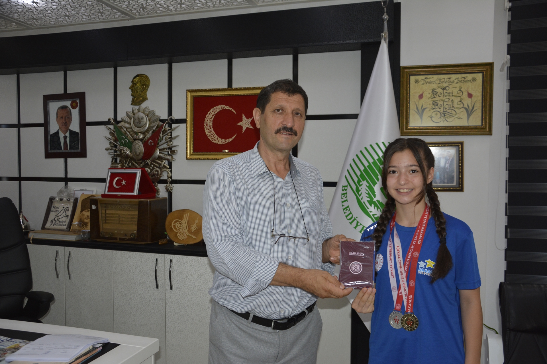 Türkiye Şampiyonu olan sporcular, İlçe Gençlik ve Spor Müdürü Bilal Yılmaz ve Antrenör Hatice Adıbelli ile birlikte Belediye Başkanımız Selami Selçuk’u ziyaret ettiler.