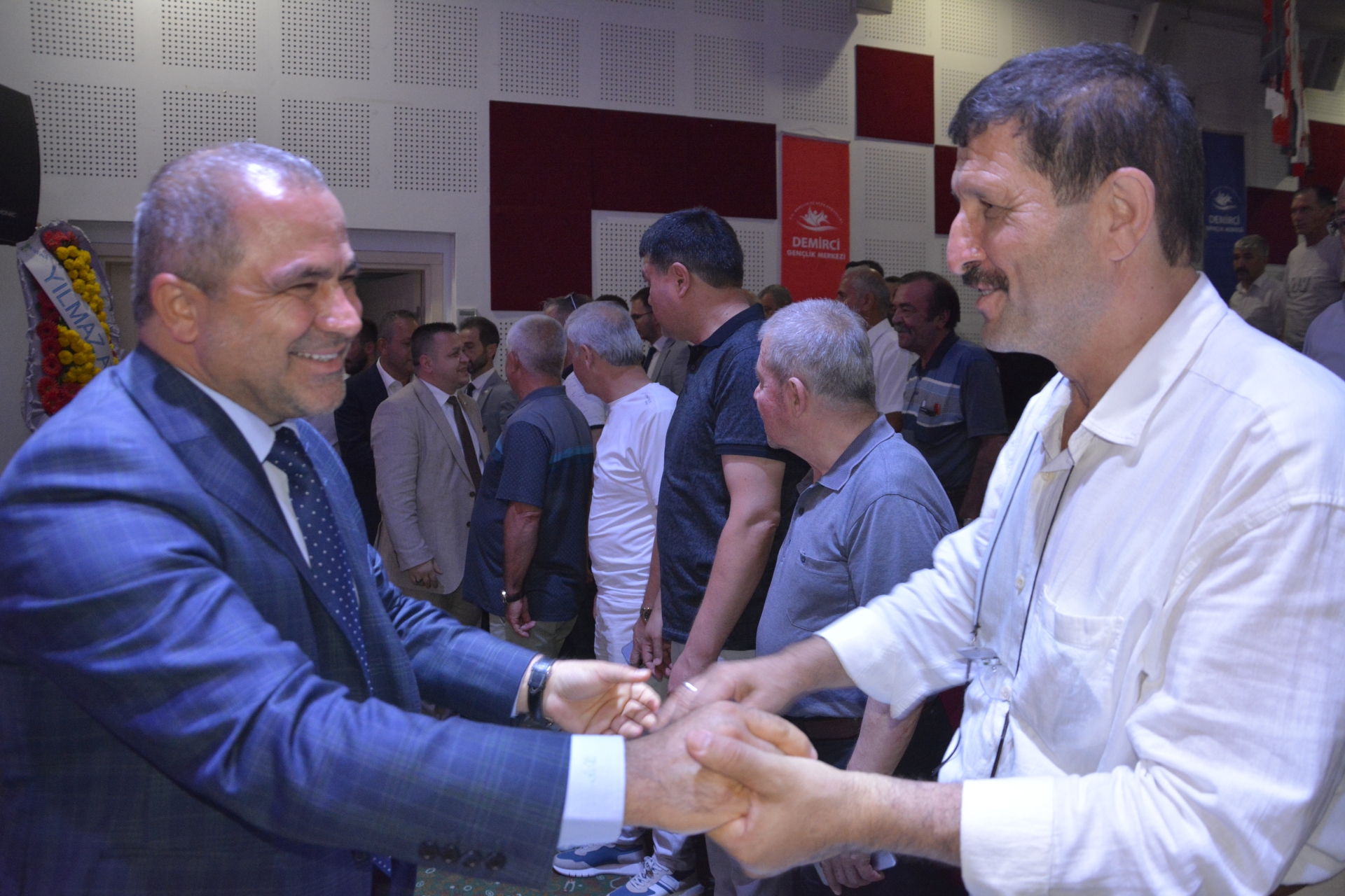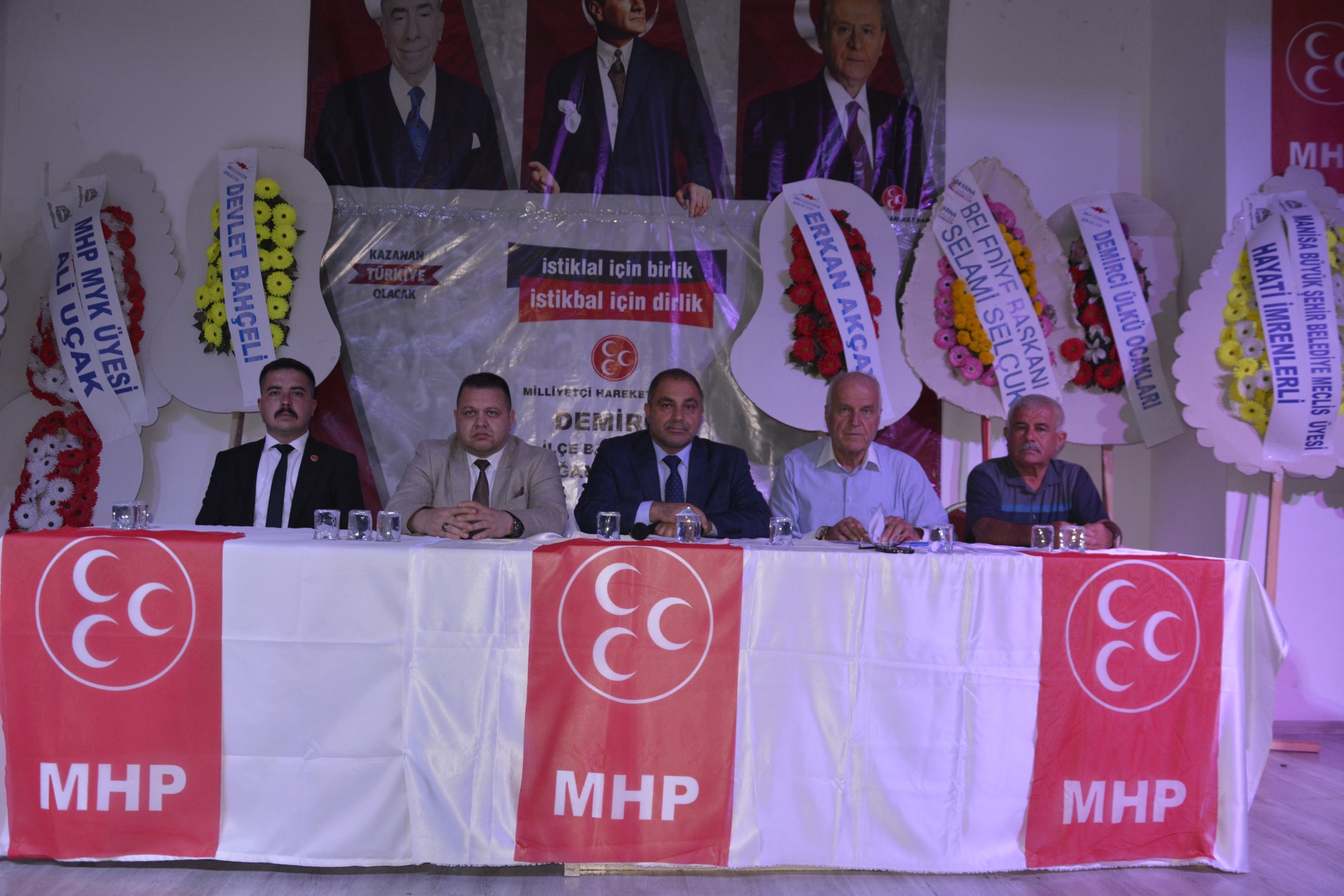 20 Ağustos 2023 Pazar günü Mehmet Akif Ersoy Gençlik Merkezi konferans salonunda yapılan Milliyetçi Hareket Partisi (MHP) İlçe Başkanlığı olağan kongresine Demirci Belediye Başkanı Selami Selçuk, MHP Manisa İl Başkanı Cüneyt Tosuner, MHP MYK Üyesi Ali Uçak, partililer ve vatandaşlar katıldı.