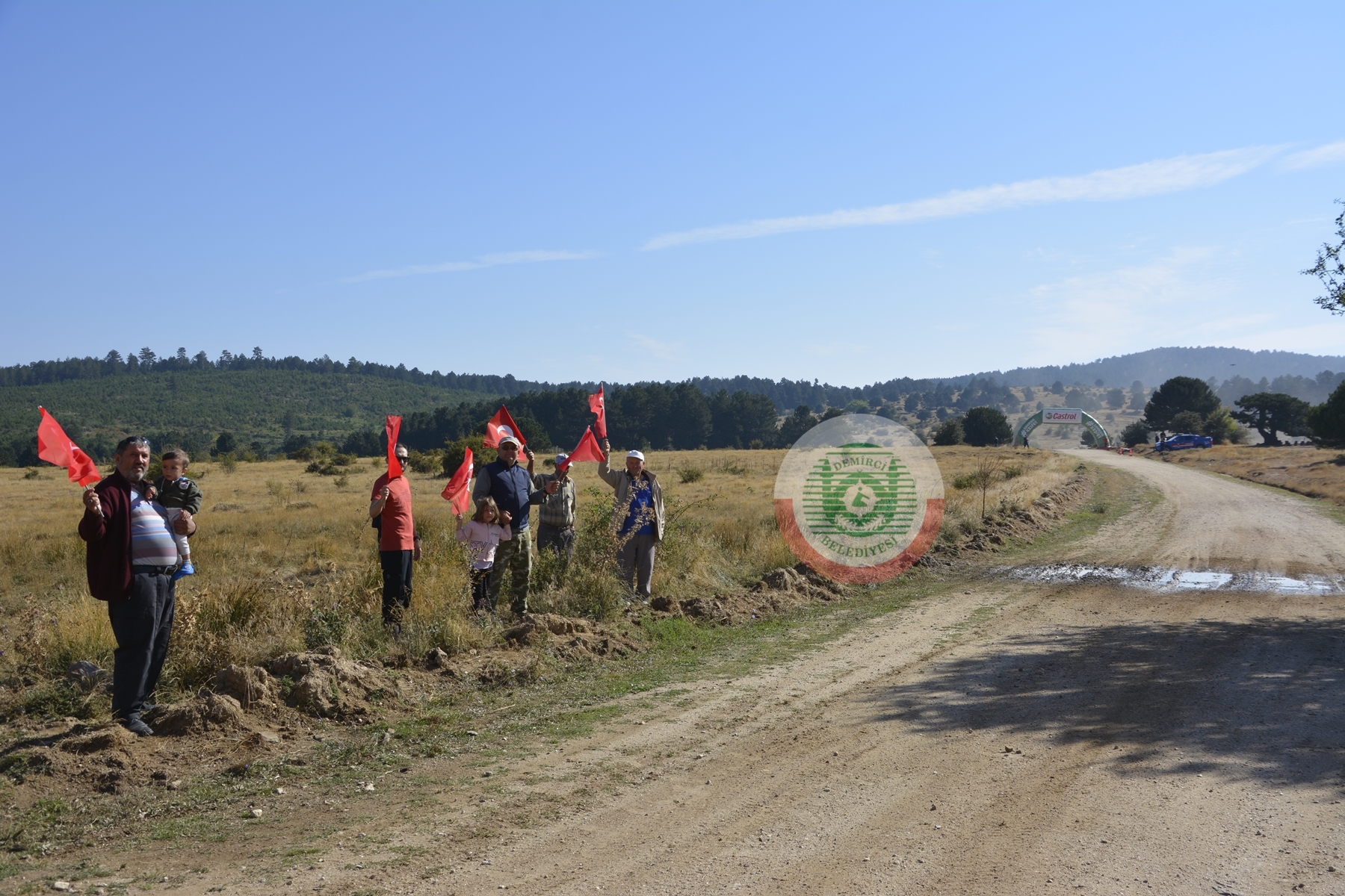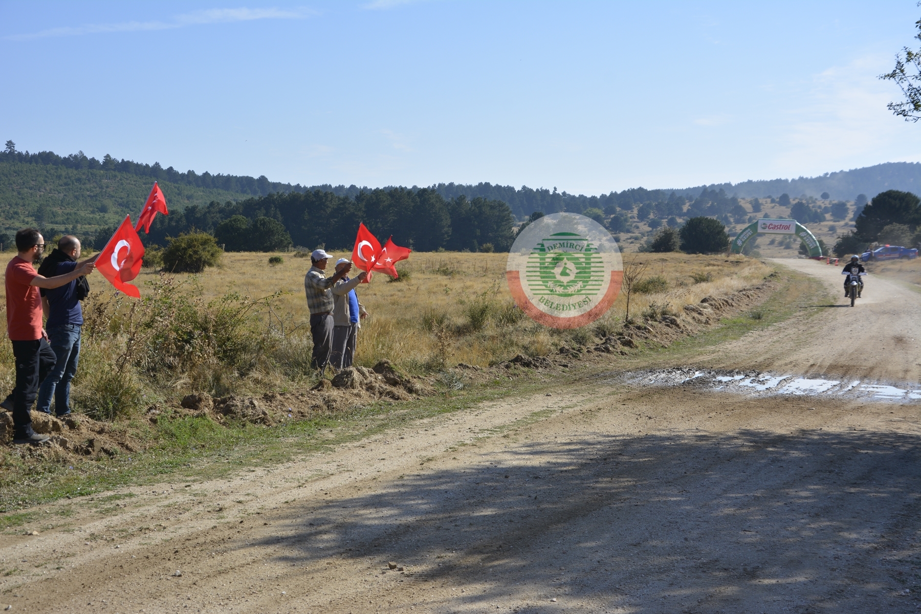 Demirci Akıncıları etabında yarışları izlemek için bölgeye gelen vatandaşlarda Türk bayrakları ile yarışçıları tezahüratlarla selamladılar.