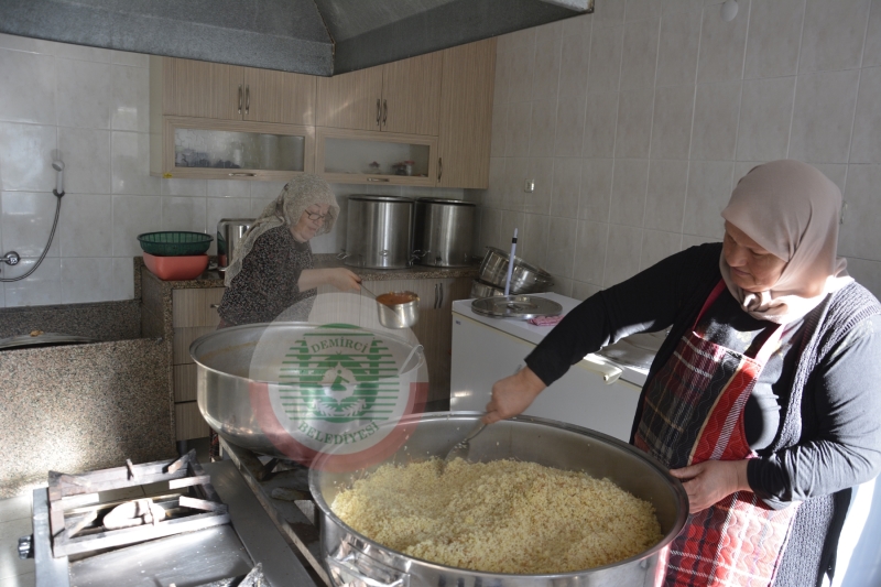 Demirci'de 15 yıldır gönüllü kadınların ellerinde pişen yemekler ihtiyaç sahibi ailelere dağıtılıyor.