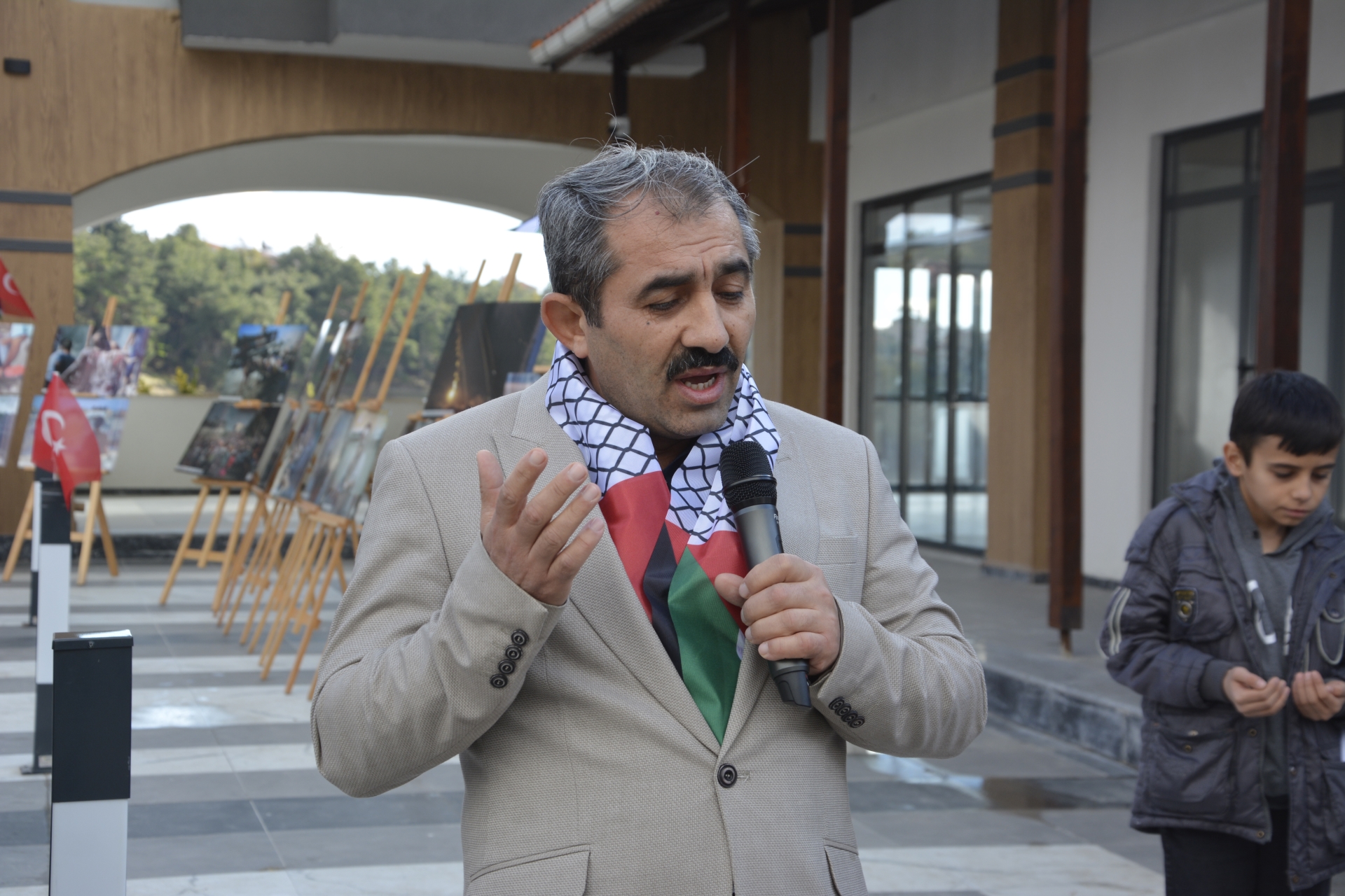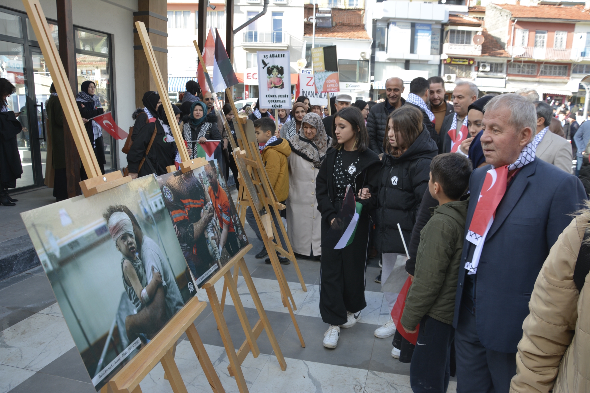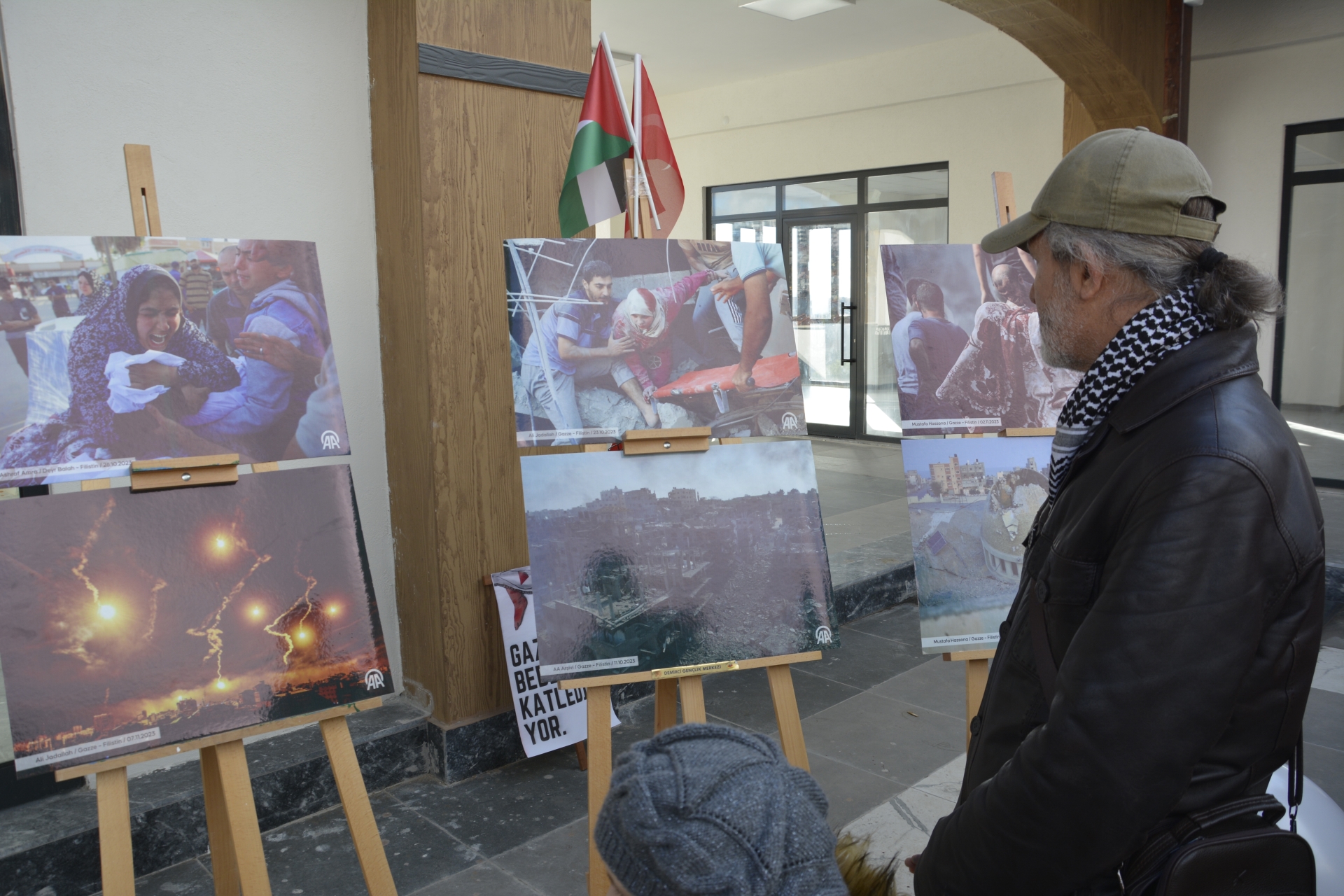 Anadolu Ajansı (AA) foto muhabirlerince Gazze'de çekilen fotoğraflardan oluşan sergi kent merkezi önünde vatandaşların ve gençler görmesi için açıldı.