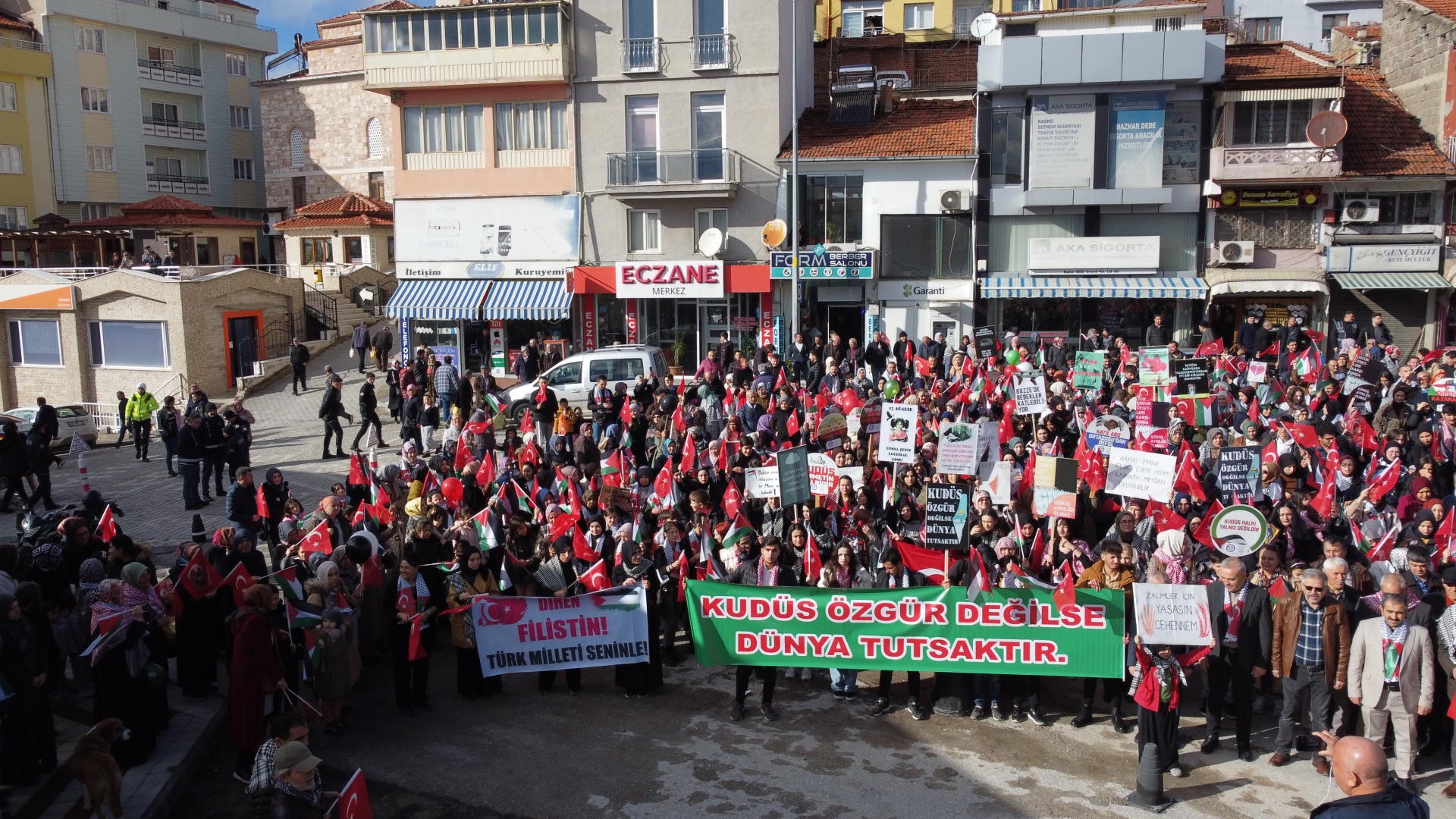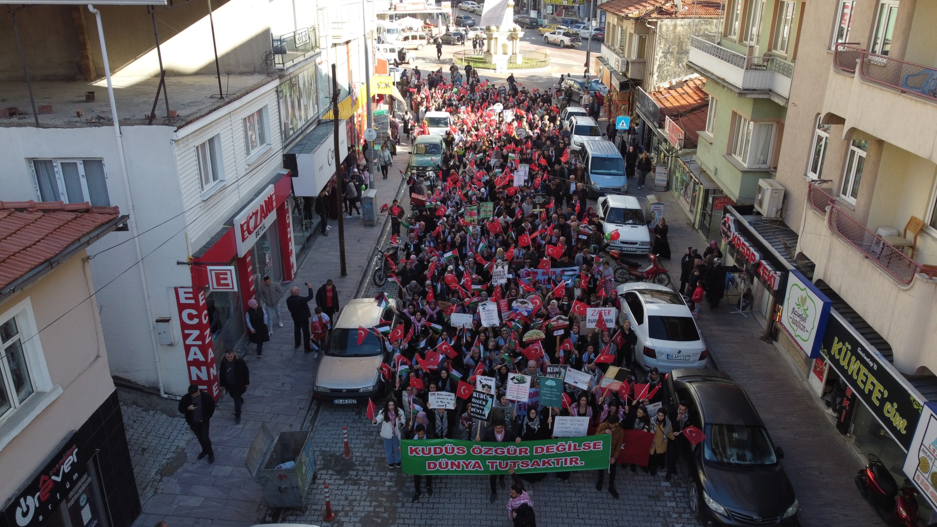 Çereşe meydanında toplanan binlerce kişi Türkiye ve Filistin bayrakları ile yürüyüş gerçekleştirildi.