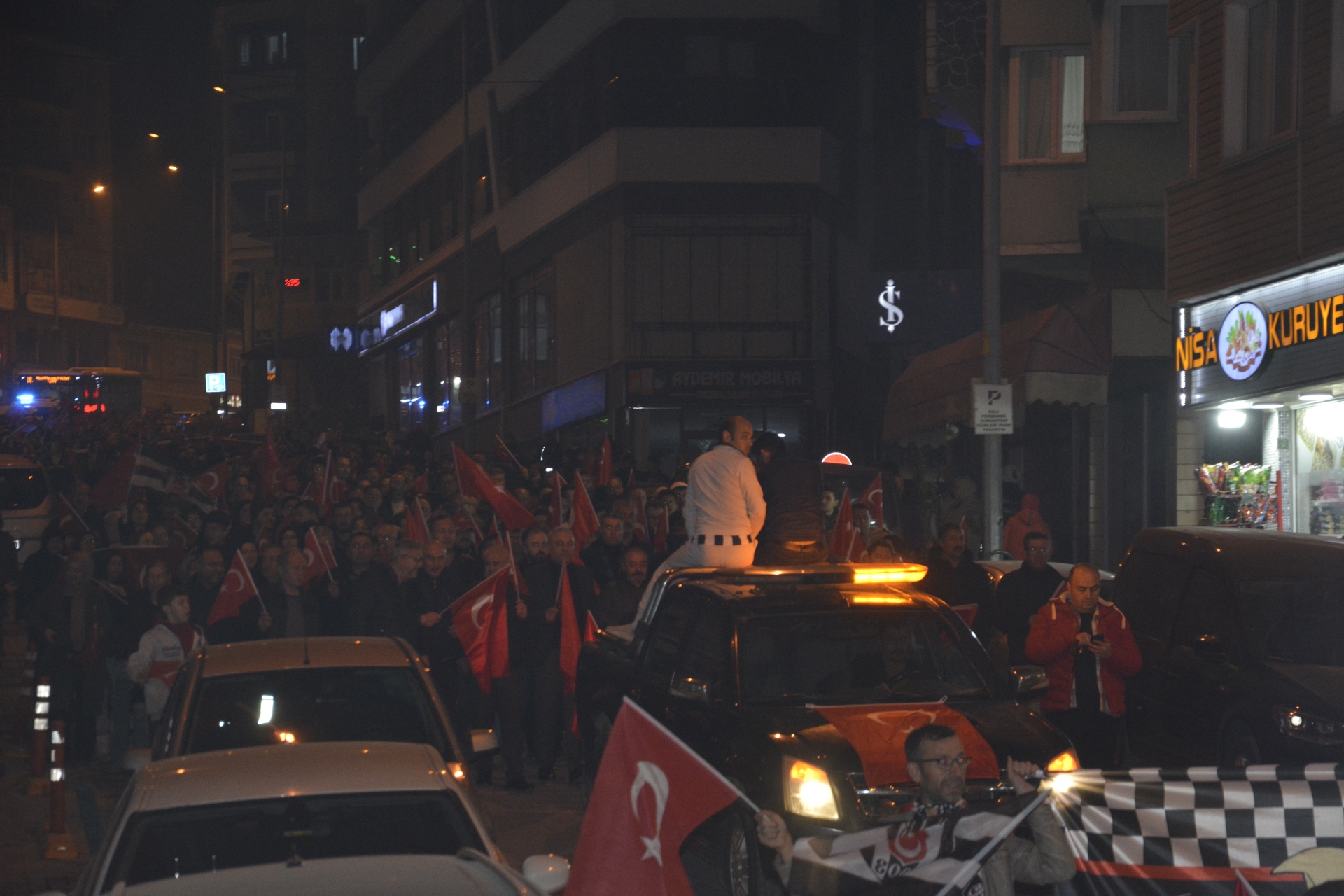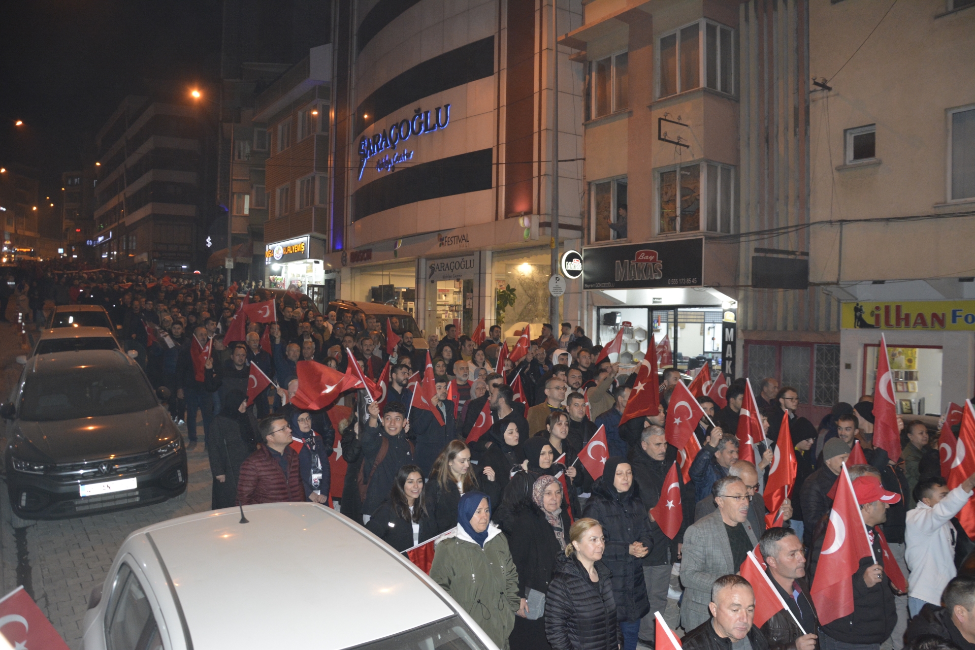 Yürüyüş öncesinde Belediye Başkanı Selami Selçuk, AK Parti İlçe Başkanı Nurullah Akgün ve MHP İlçe Başkanı Ümit Kanyılmaz tarafından vatandaşlara bayrak dağıtıldı.