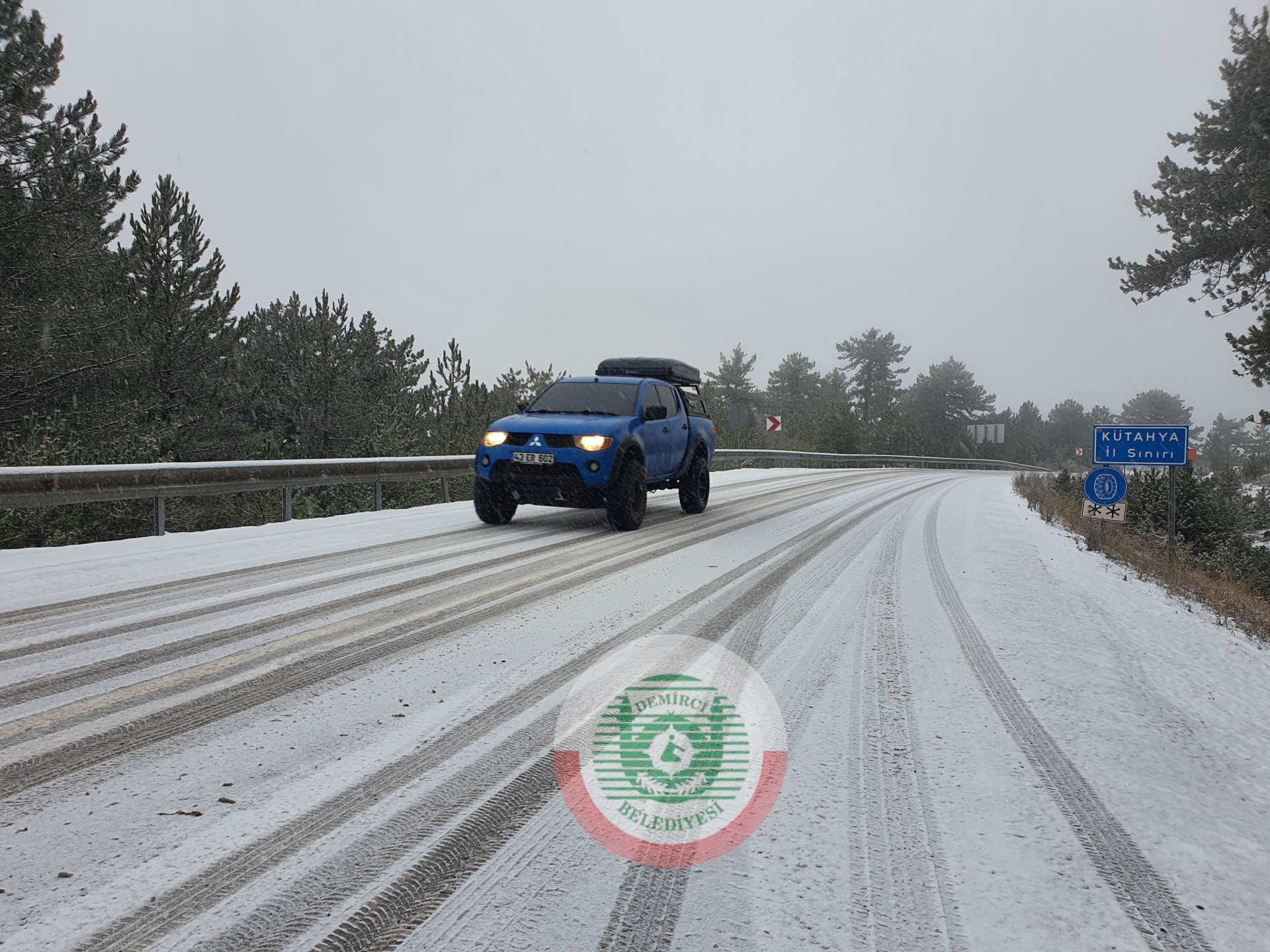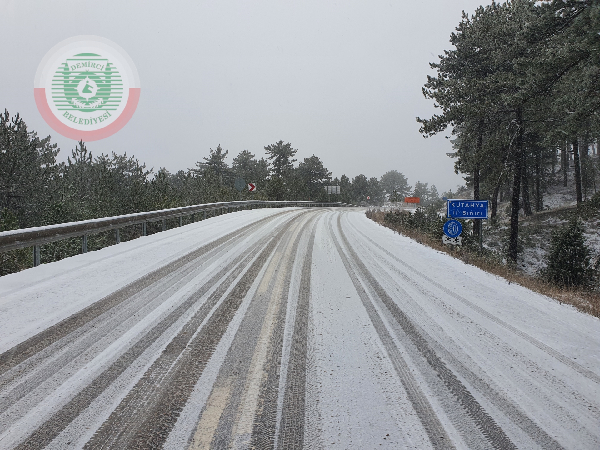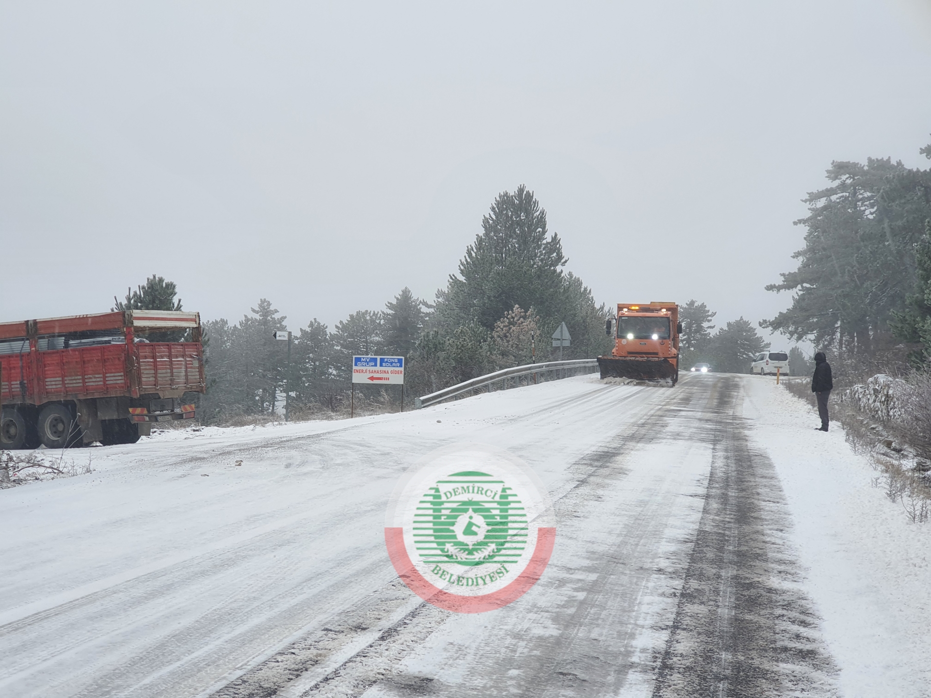 Kar lastiği ve zinciri bulunmayan araçlar Demirci - Simav karayolunda zaman zaman zorluk yaşarken, karayolları ekipleri ulaşımda sıkıntı yaşanmaması için çalışmalarını sürdürüyor.