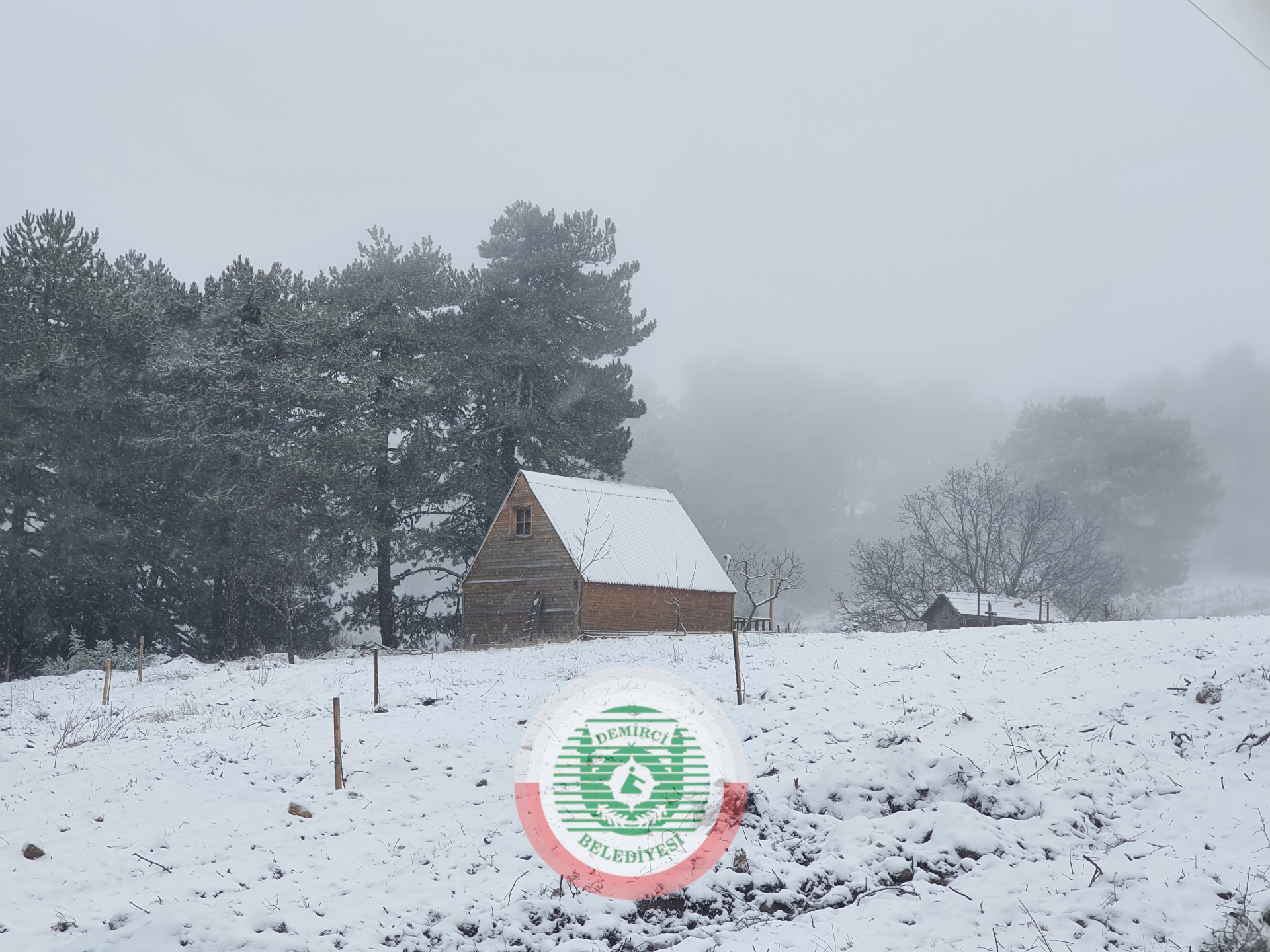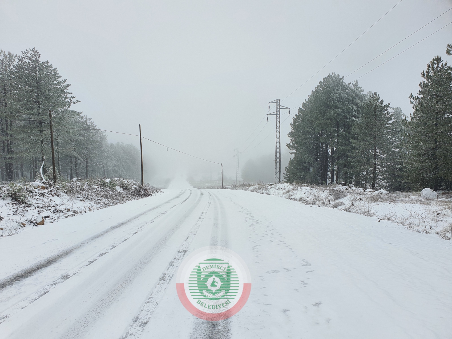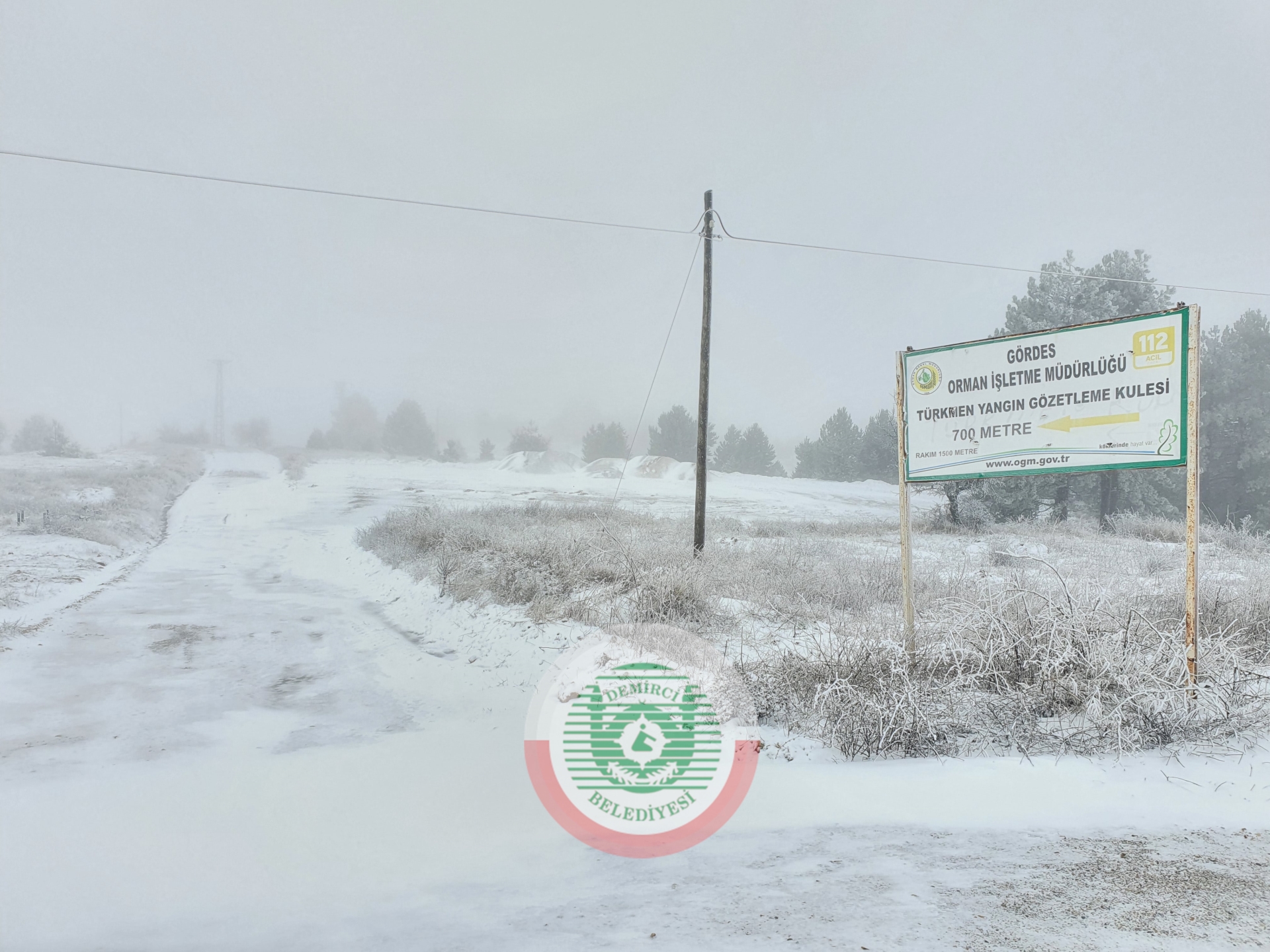 Demirci'nin yüksek kesimlerinde sabaha karşı başlayan kar yağışı ile dağlar beyaza büründü.