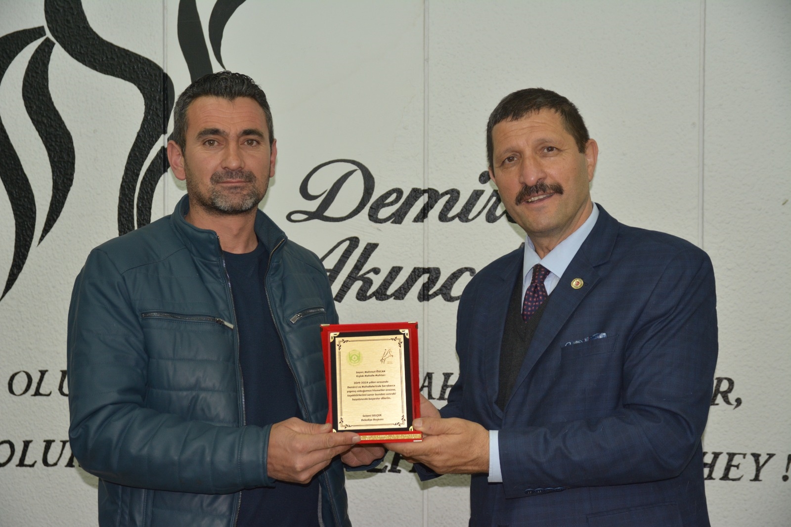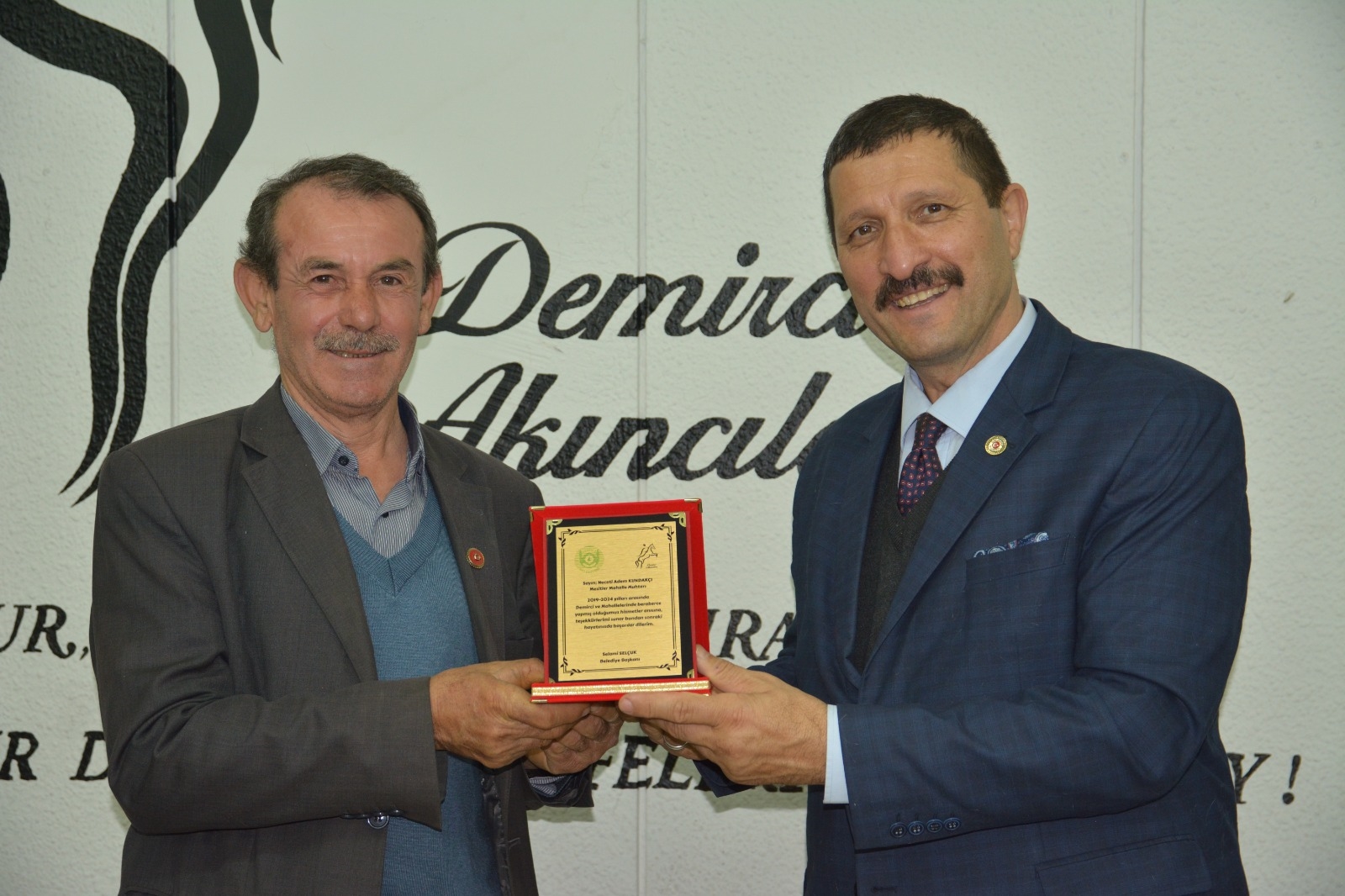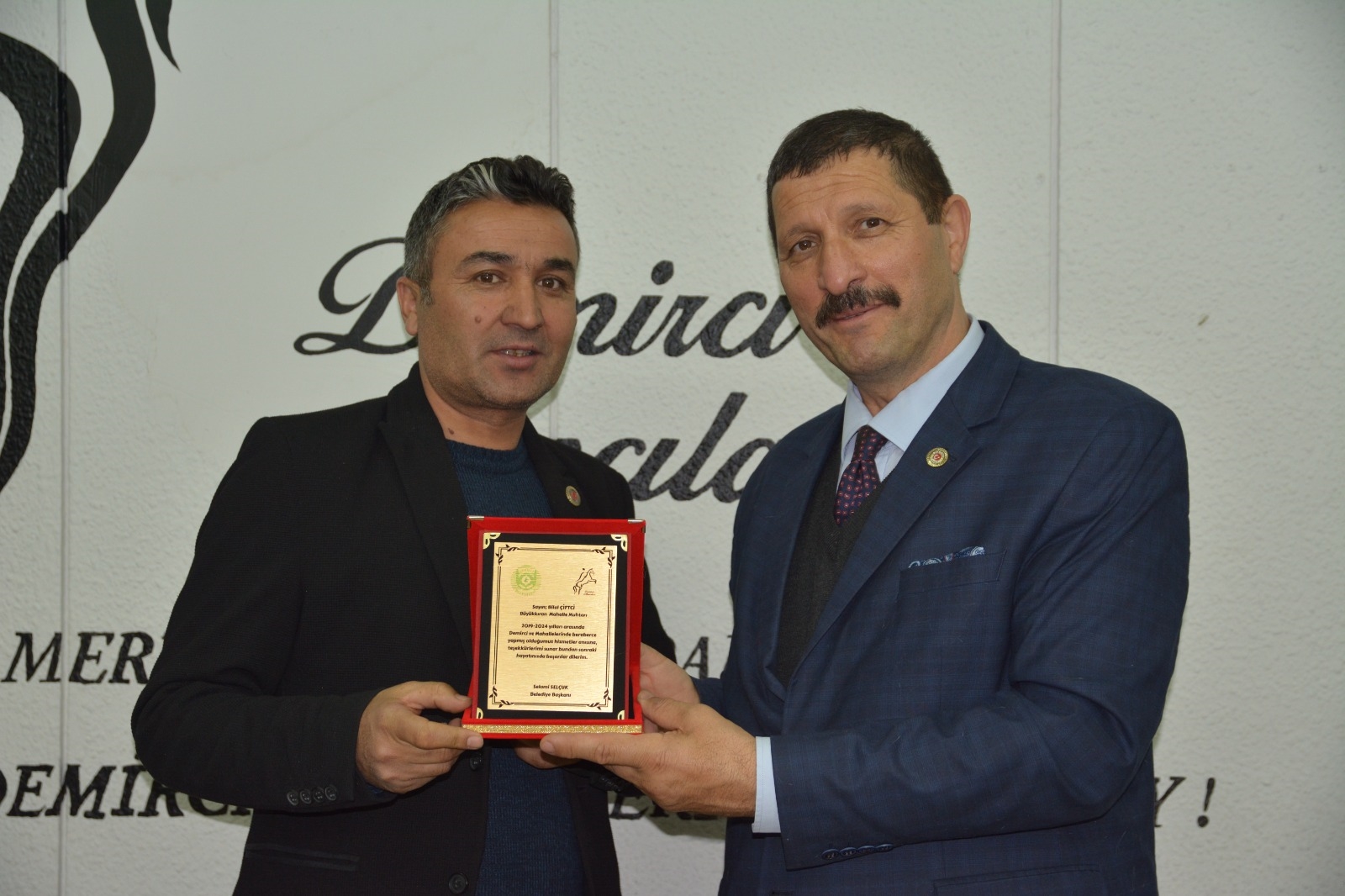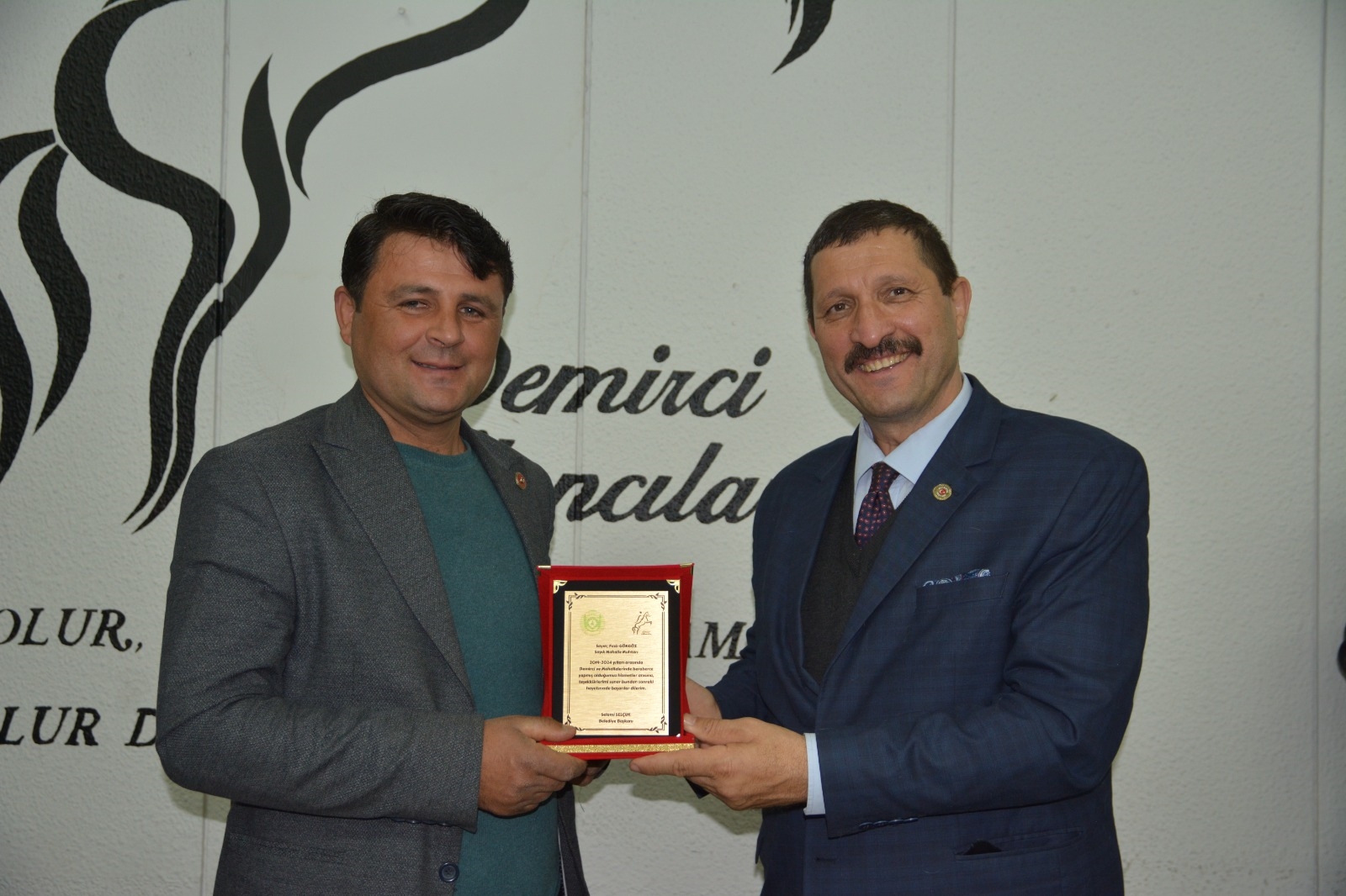 Demirci Belediye Başkanı Selami Selçuk, ilçe merkezi ve kırsal mahalle muhtarları ile bir araya gelerek teşekkür plaketi takdim etti.
