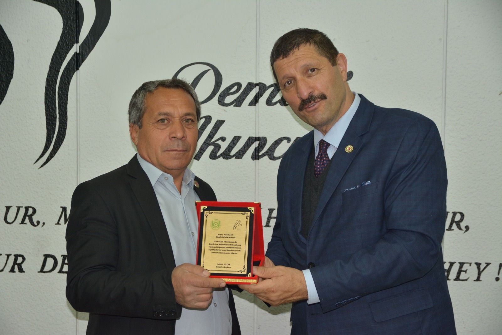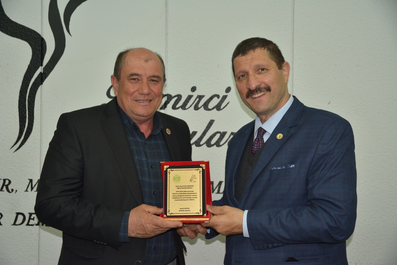 Konuşmaların ardından Belediye Başkanı Selami Selçuk, mahalle muhtarlarına birlik ve beraberlik içindeki çalışmalarından dolayı Teşekkür plaketi takdim etti.